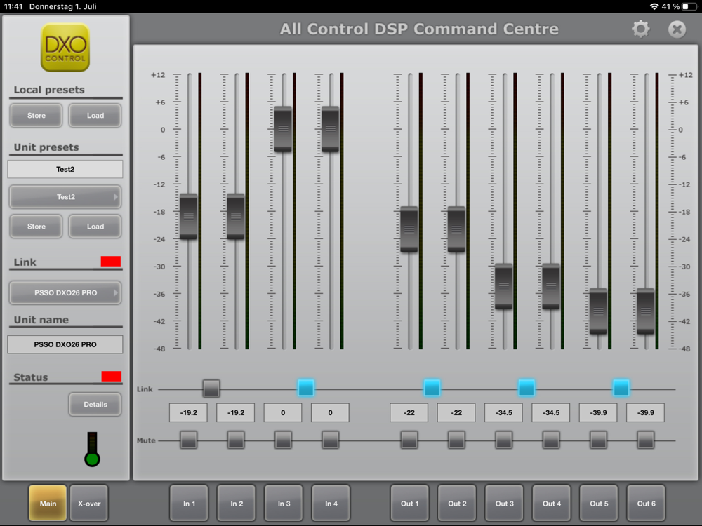 DXO Control provides easy configuration of PA systems directly via iPad. The app supports the DXO-26PRO and DXO-48PRO controllers and the PRIME system amplifier by PSSO. Users gain full control over the built-in DSP modules. Activate presets and make individual adjustments as needed. DXO Control comes with all the features normally provided by the PC software.