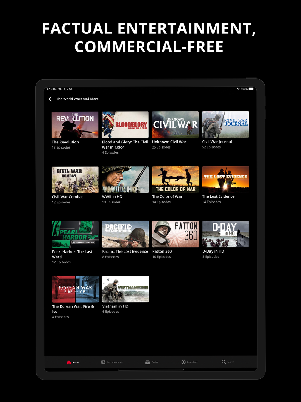 Now with over 2,000 videos – HISTORY Channel brings you thousands of documentaries and specials exploring the events and people that shaped our world, from ancient empires to modern warfare, all commercial-free.