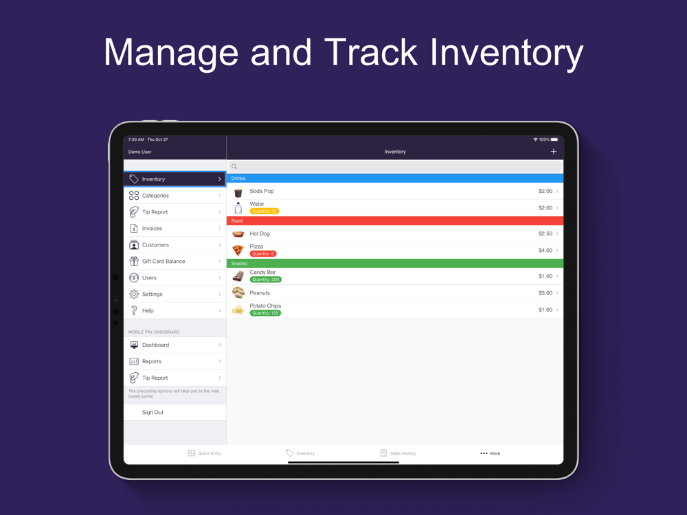 • Easy transaction management - Quickly add multiple items to a purchase, edit sales tax on the fly, and more