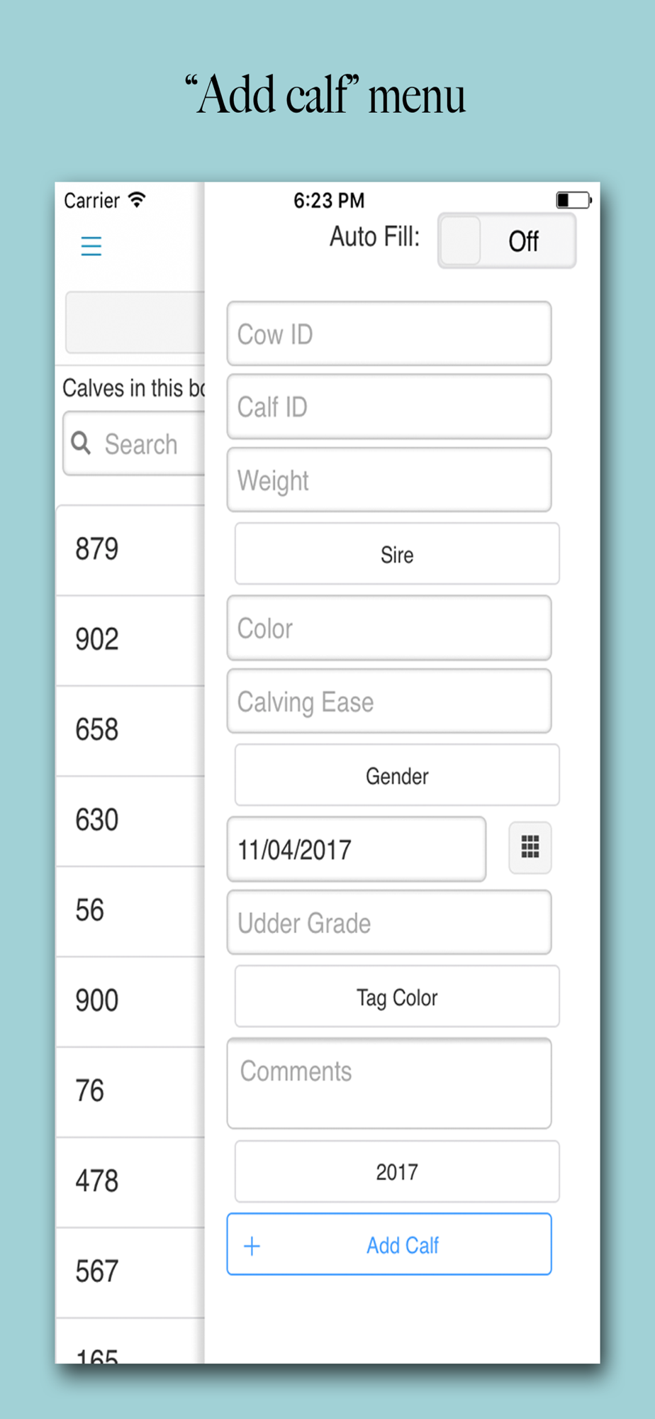 This is a quick way to keep track of calf records. We made it easy for users to access multiple books from the same app. Need to look at last years book? No problem! It won't go away unless you delete it!