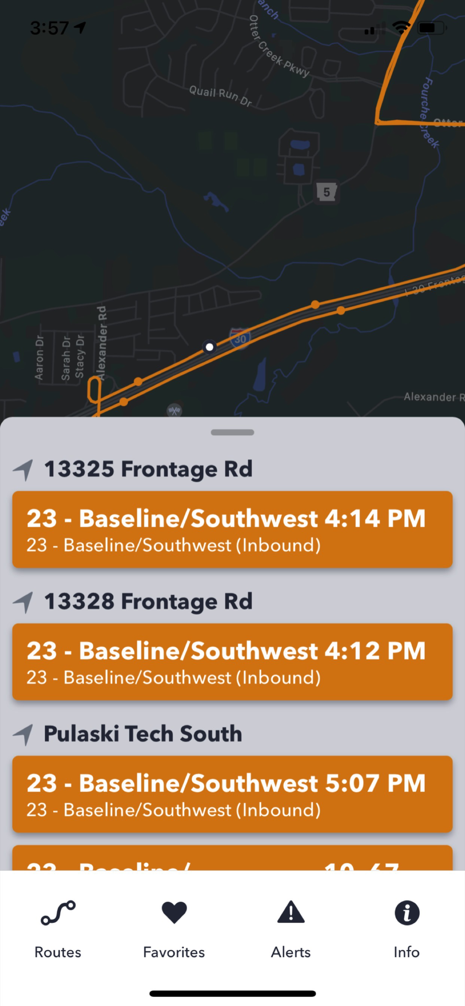 Metro Track provides real-time arrival information for the Rock Region METRO (Central Arkansas area) public transit system buses. Use the app to mark favorite stops and routes, set reminders, get alerts, plan your trip and access general information.