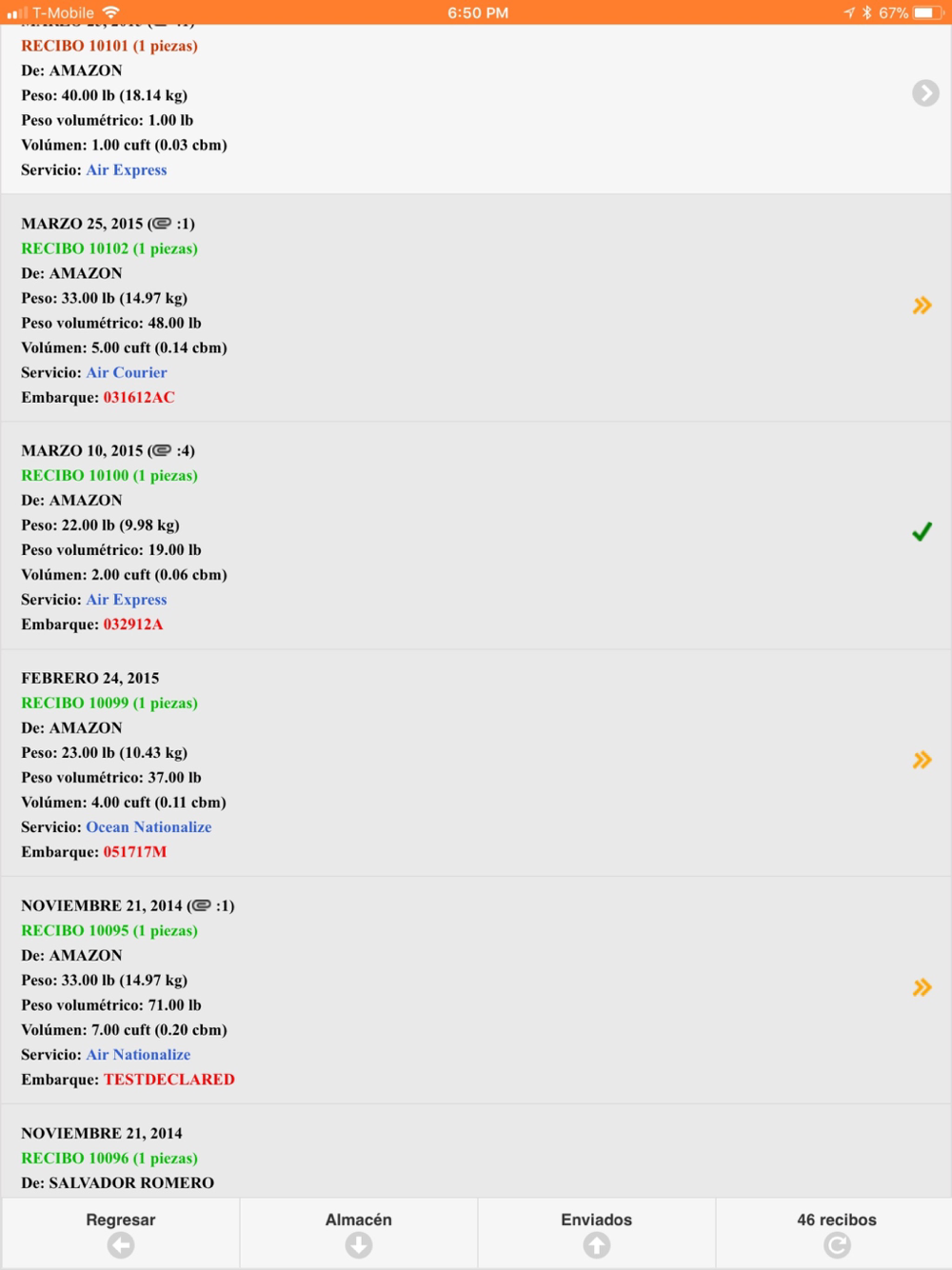 * Ver sus Recibos de Almacén por despachar y los ya enviados.