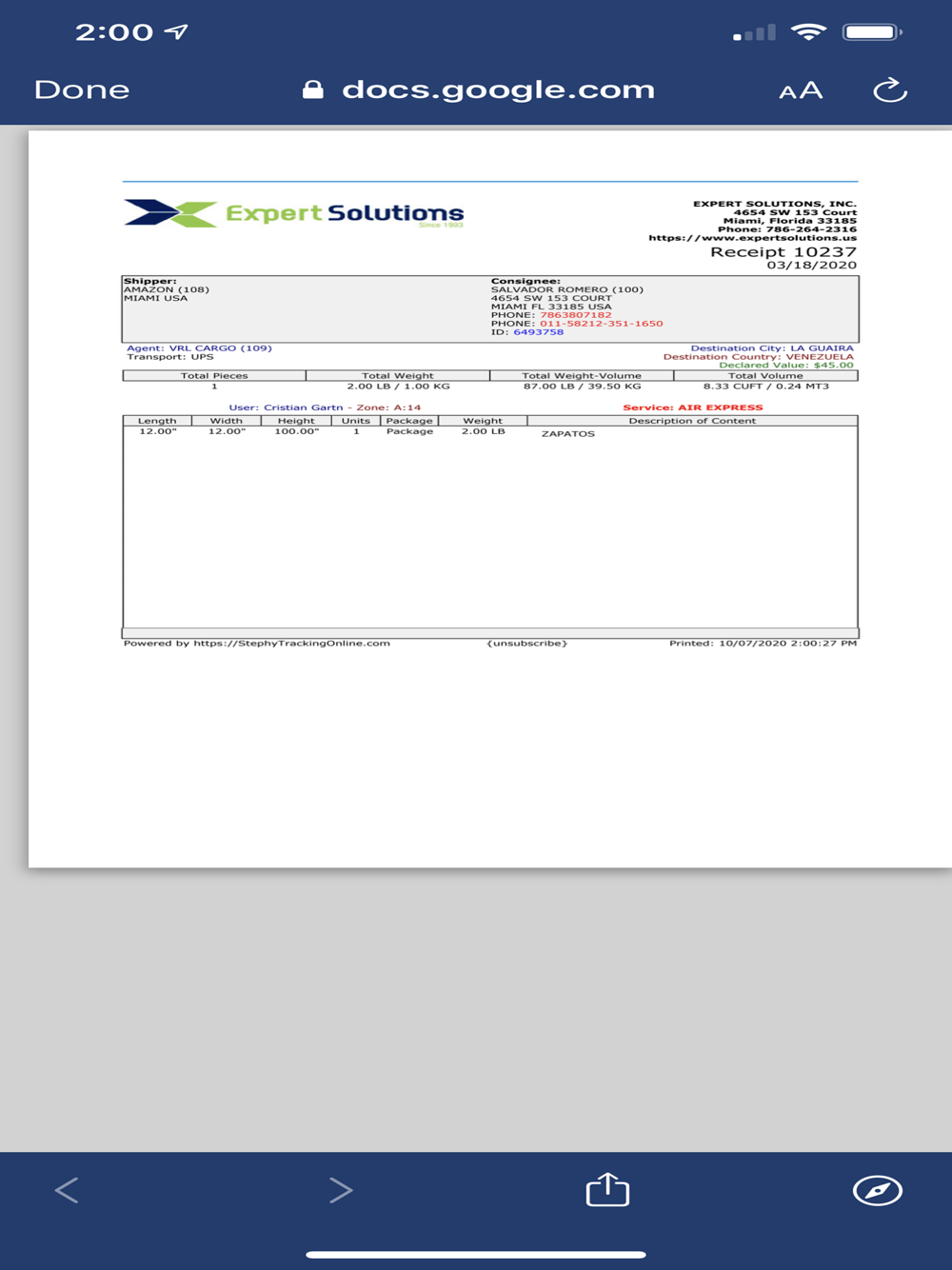 * Registro de Pre-alertas: Asignación de Estatus a los seriales trackings (UPS, USPS, Fedex, etc.) de las cajas que llegan al almacén.