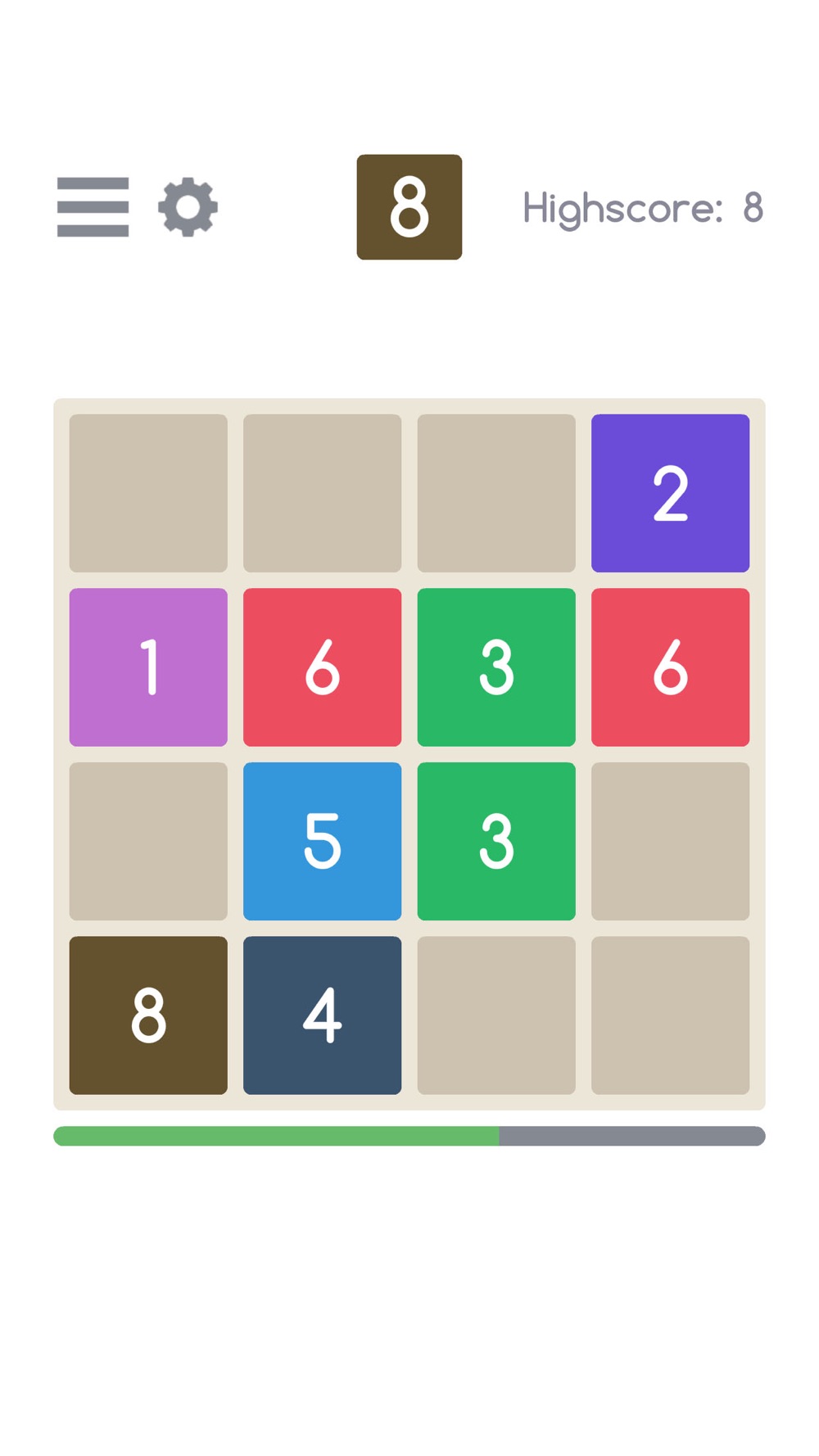拖动数字方块进行叠加,让方块相互叠加,如果方块数值相同就会合成为数值比他们大一的数字,不断重复叠加获取更高的分数.