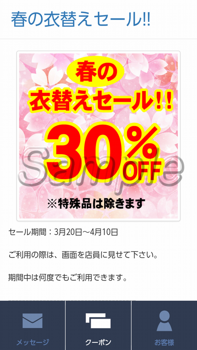 クリーニングルビーからお客様に向けて配信されるお得なクーポンを受信できます。
