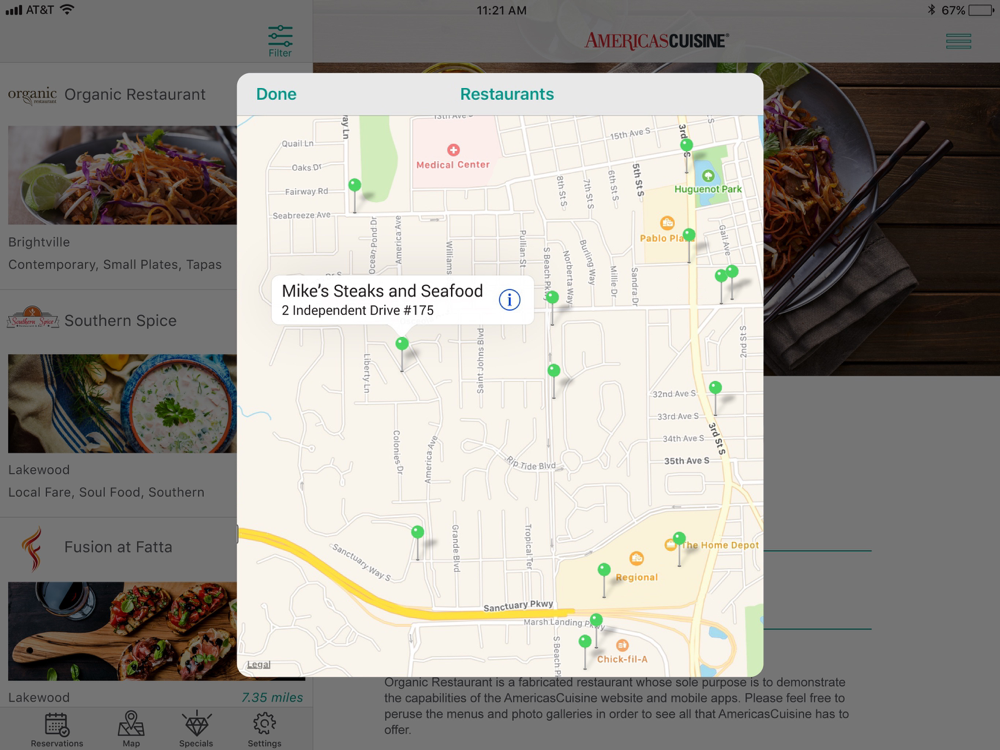 Every restaurant listing includes menus, photos, restaurant amenities, reservation capabilities and GPS directions to help mobile diners find the best meal in the city. Using advanced search options, pick your restaurant by name, location, cuisine type or meals served with the search option. The Greenville Dining App is supported by AmericasCuisine.com, a Nationwide Dining Guide that diners and travelers have learned to trust over the past 20 years.