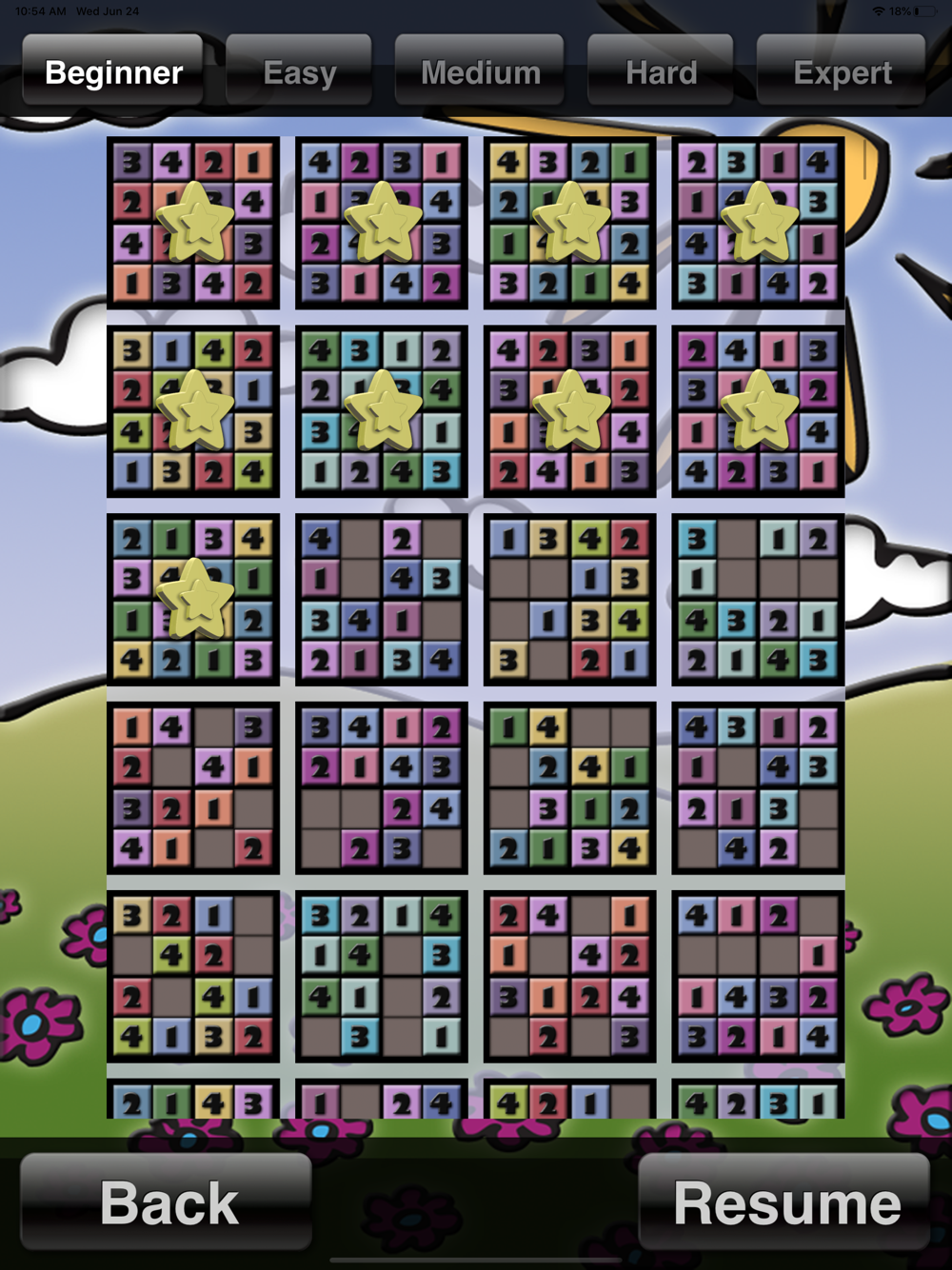 Ten puzzle levels cover a huge range of difficulties, from the easiest 4x4 level, which is perfect for younger kids, to the expert 6x6 level which is almost as hard as regular sudoku. This means the game can grow with you for a long time while you progress. Once you have mastered all the levels in this app, you are ready to graduate to regular sudoku!