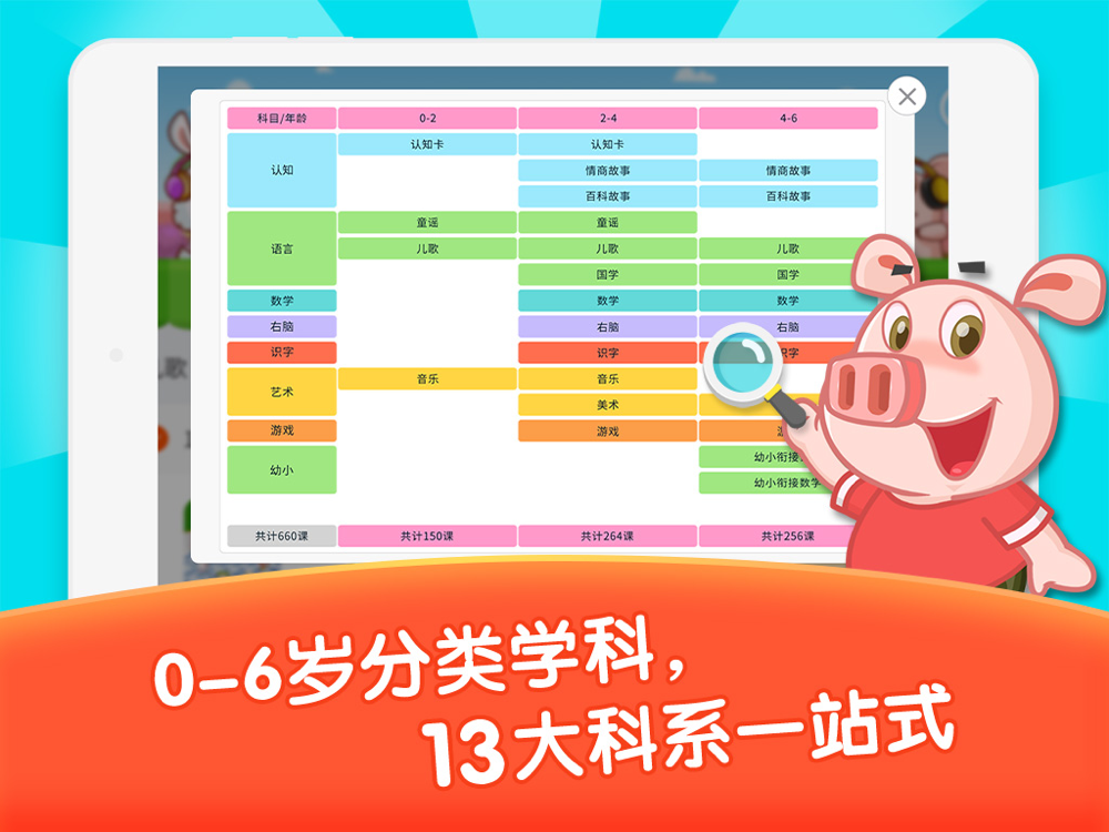 2.分龄早教,方便0-6岁任何一个阶段的宝宝进行选择