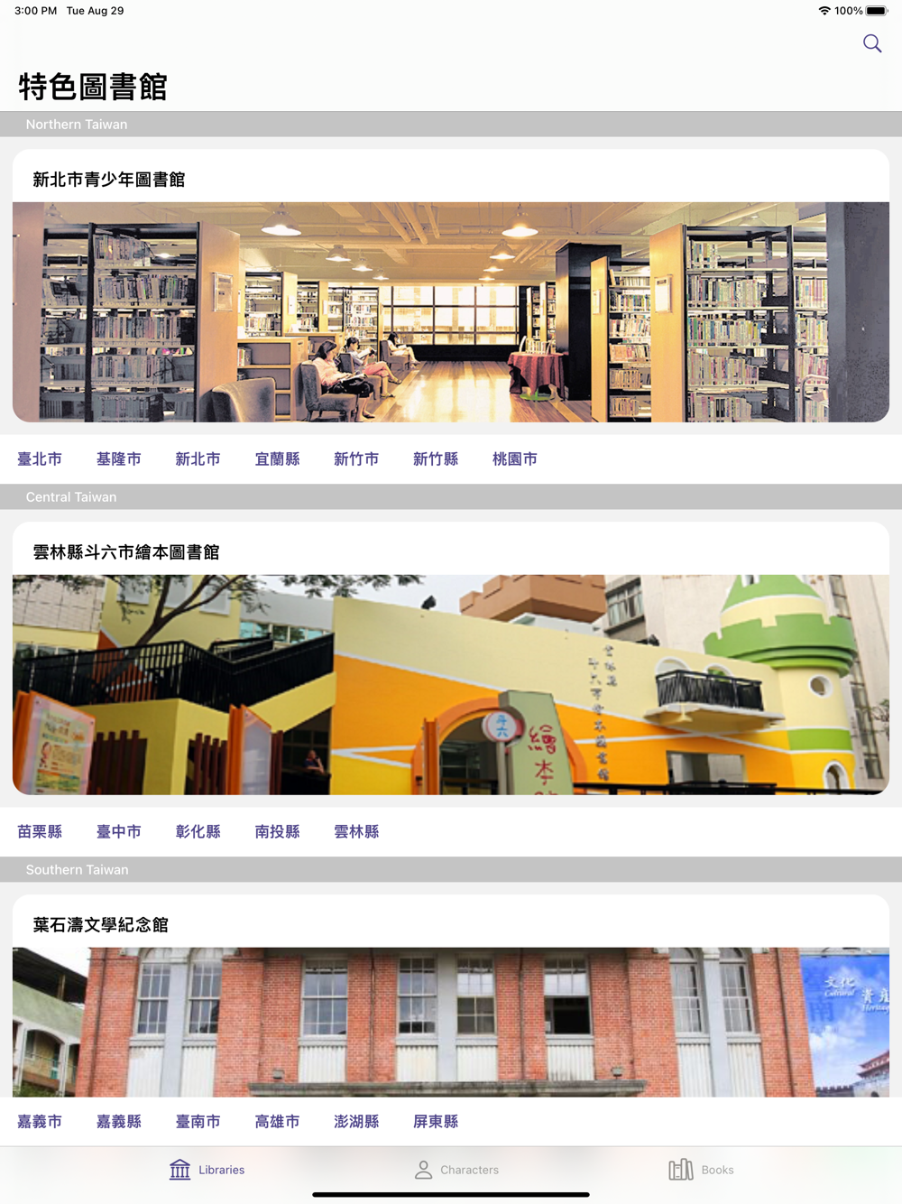 目前收錄資訊內容:特色圖書館 83 筆,人物 427 筆,典籍 104 筆。