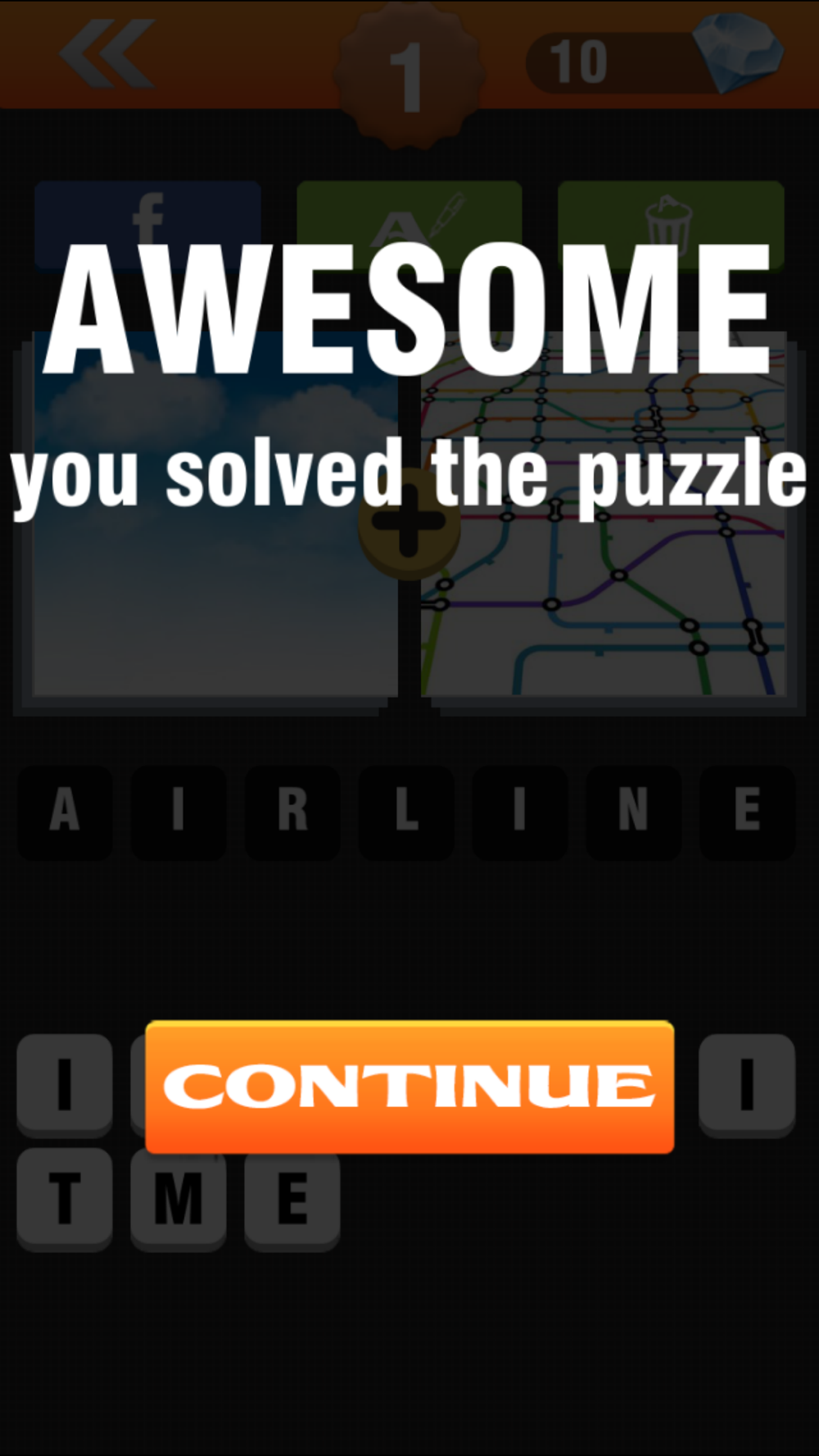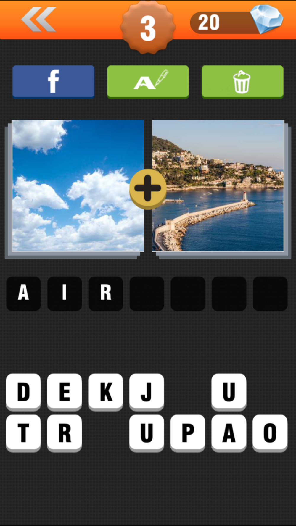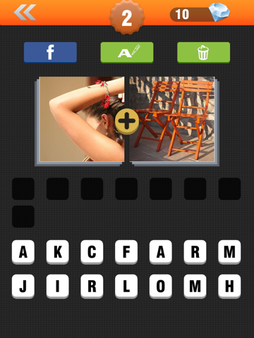 Each puzzle consists of two pictures depicting two different words. Combine them to guess the word.