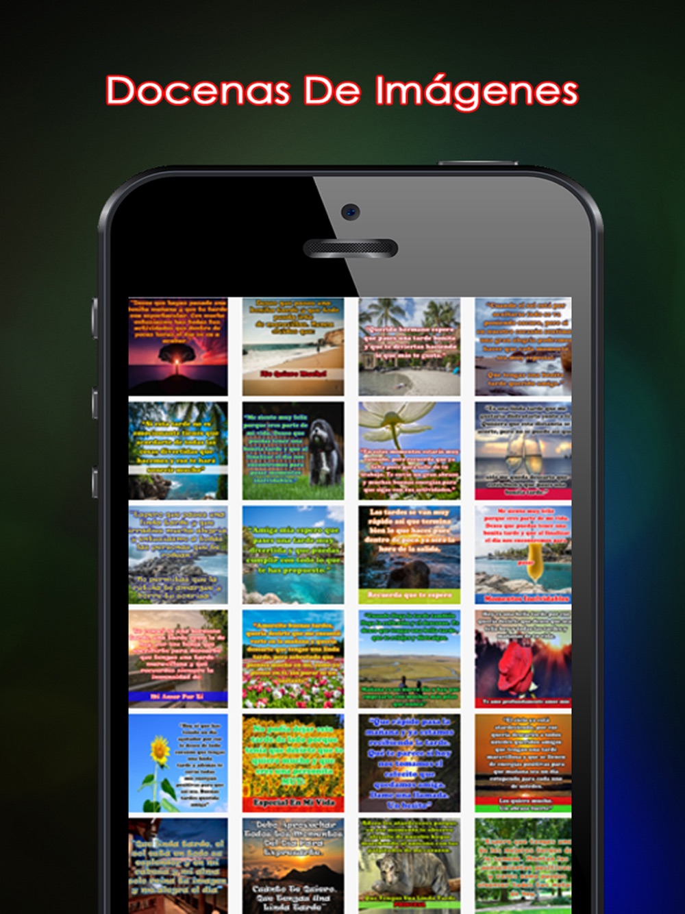Hermosa colección de imágenes con frases de buenas tardes, es un app muy completa con docenas de fotos con frases hermosas, motivación, de animo, para compartir todos los días. Justo para compartir las imágenes en tu trabajo, con una amistad, amigo o amiga con tu pareja, novio o novia, con tu familia, etc.