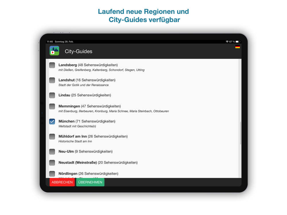 + Viele neue City-Guides+ Neue City-Guide-Auswahlseite mit Ortssuche