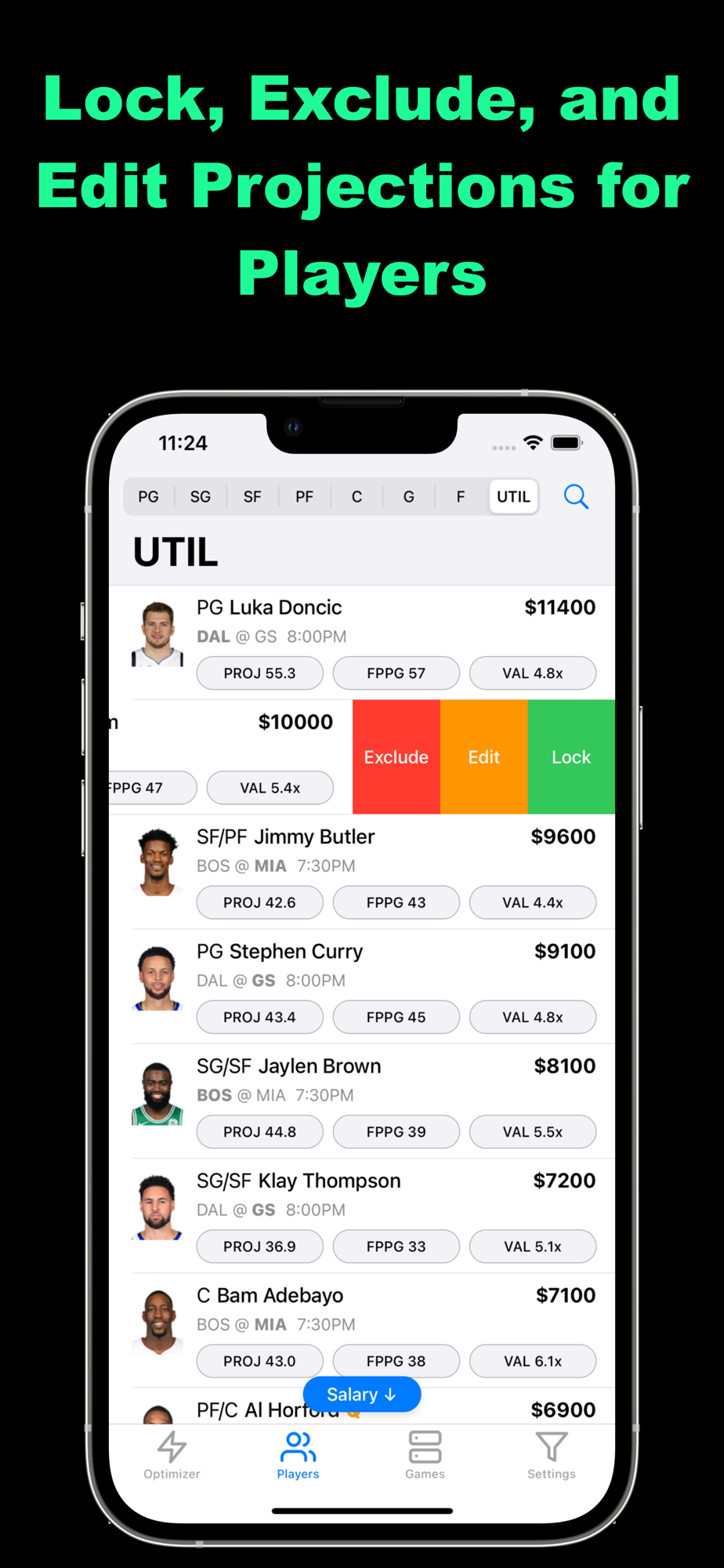 - Edit player projections to your liking.