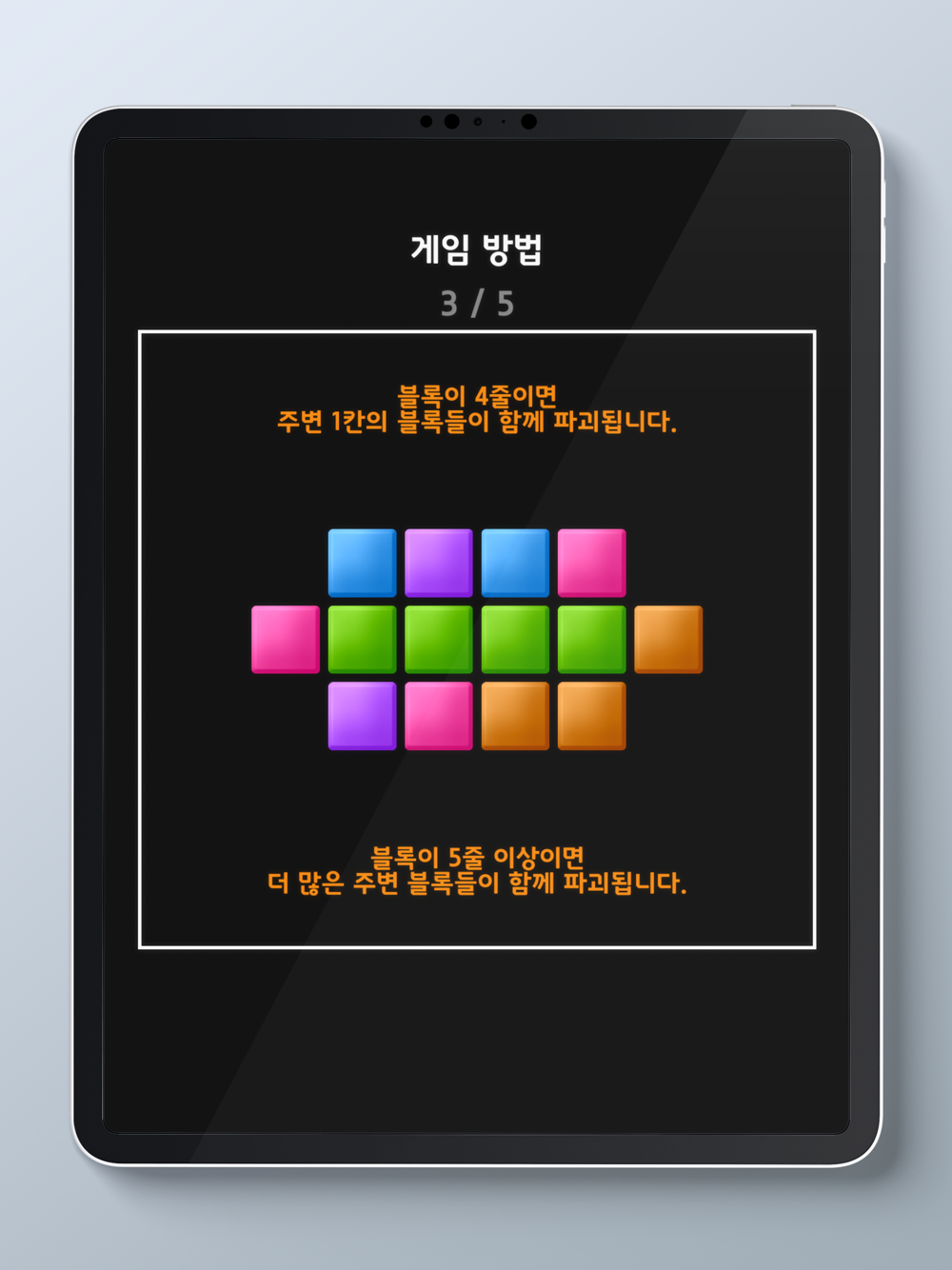 - 4 blocks in a row will destroy other blocks near 1 tile.