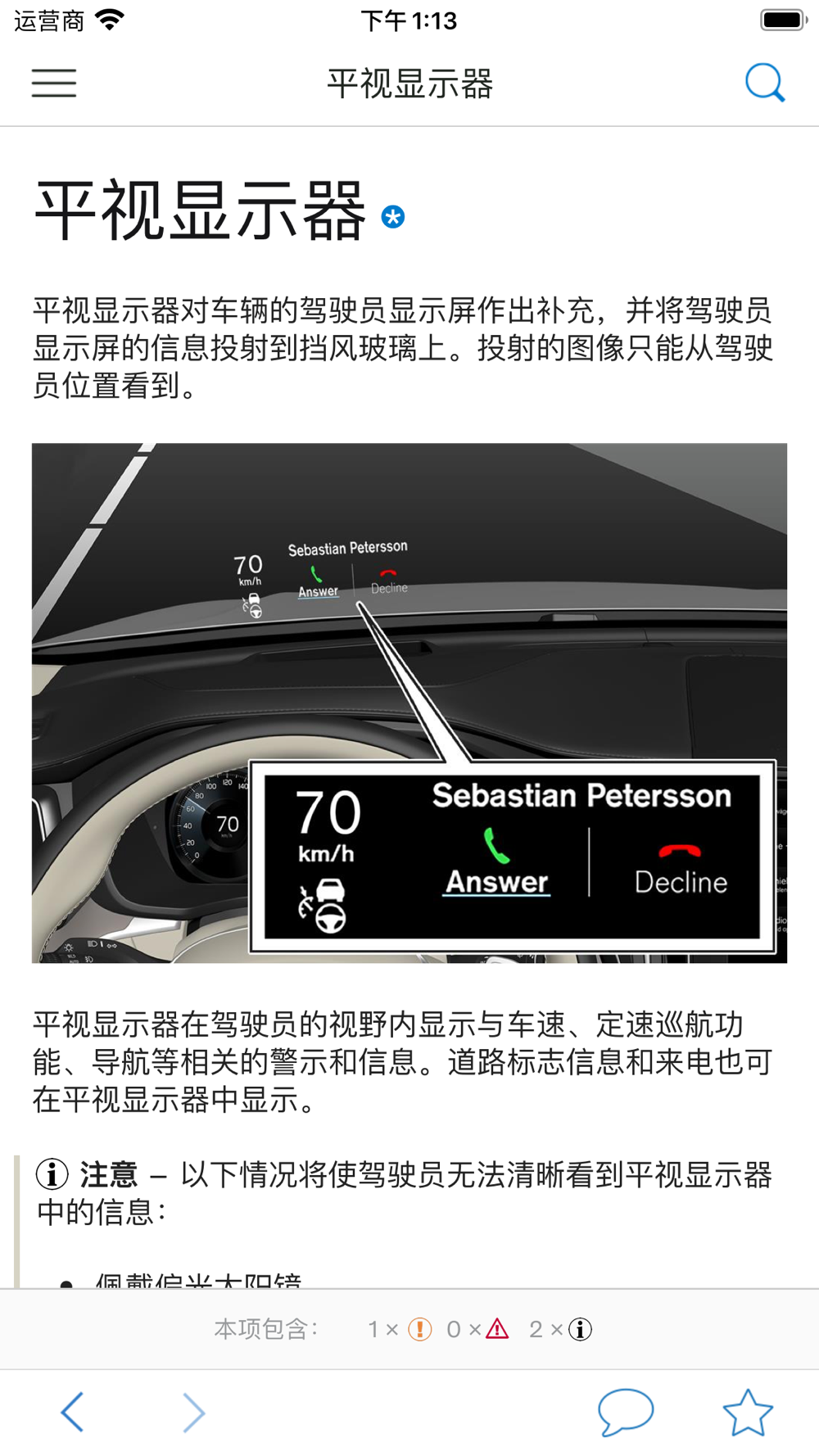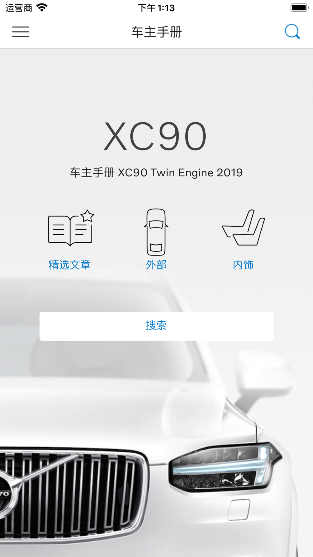 首次使用应用程序以及下载更详细的电子版《车主手册》时需要有互联网连接。 下载完毕后,则无需互联网连接即可查阅《车主手册》。