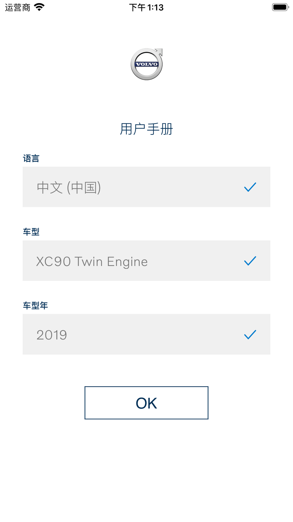 • 选择车型、语言和车型年份。