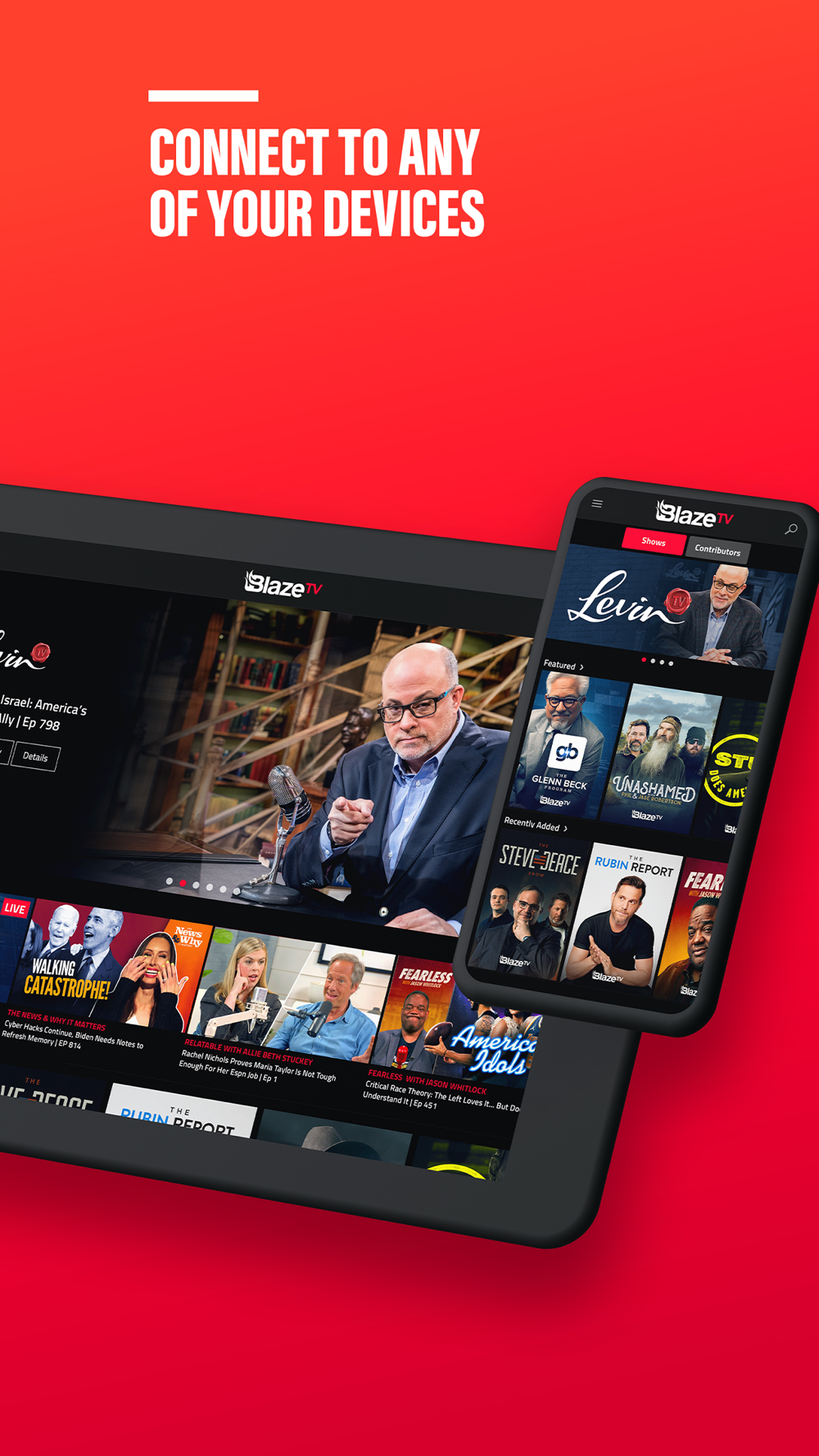 The BlazeTV app plugs you into on-demand video from the best talent in conservative media. Tune in to Blaze Live to stream broadcasts from your favorite BlazeTV hosts. Watch Mark Levin, Glenn Beck, Phil Robertson, and many more whenever you want, however you want.