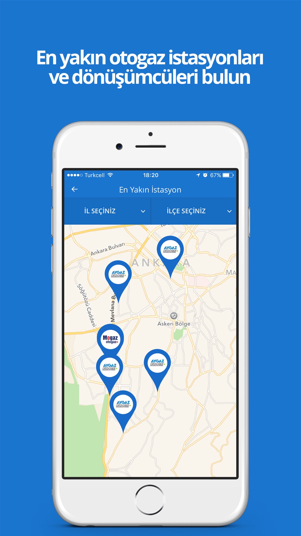 En yakın Aygaz ve Mogaz Otogaz istasyonlarının yerlerini haritadan görebilir ve rota oluşturabilirsiniz.
