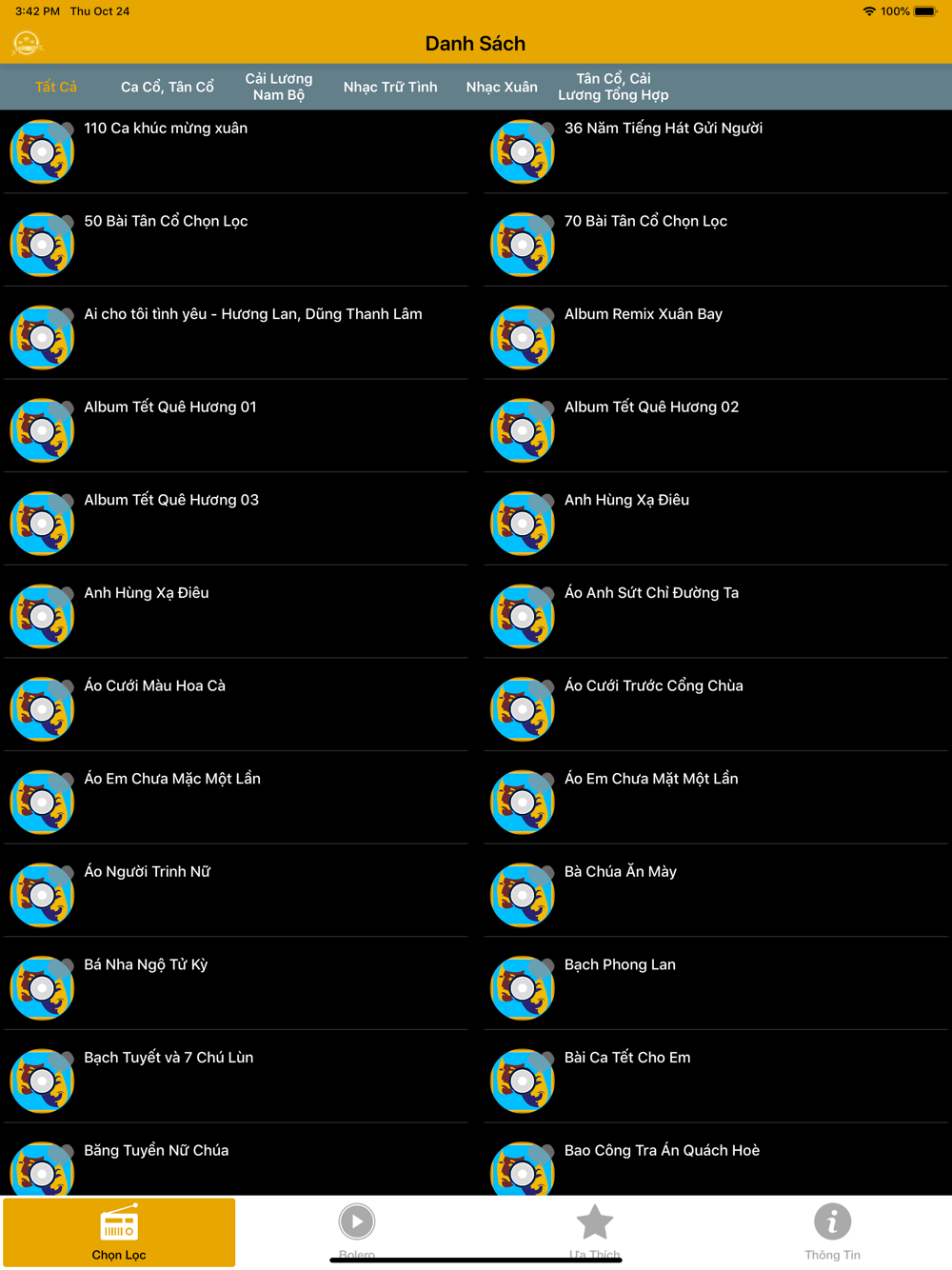 - Album nhạc vàng, nhạc xưa tuyển chọn.