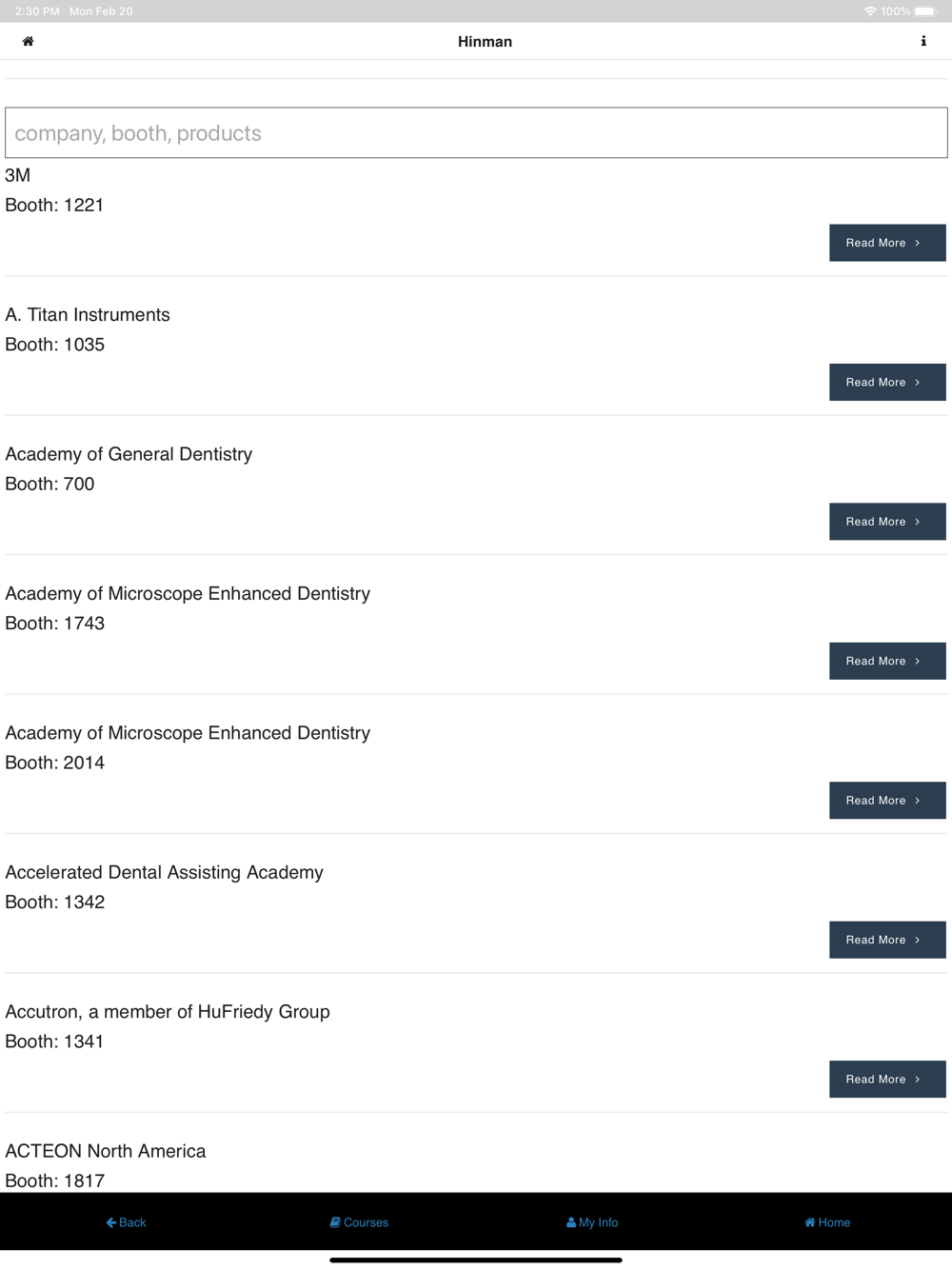 Manage your Hinman experience with our app. The Hinman app provides you with easy access to exhibitors, events, classes, and speakers.