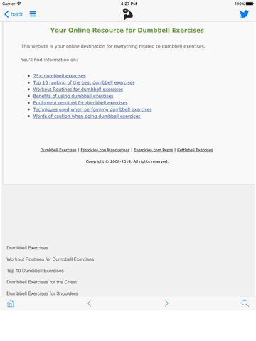 A complete guide to exercising with dumbbells. The app shows 75 different exercises plus dumbbell workouts for different muscle groups and dumbbell workouts for the whole body.