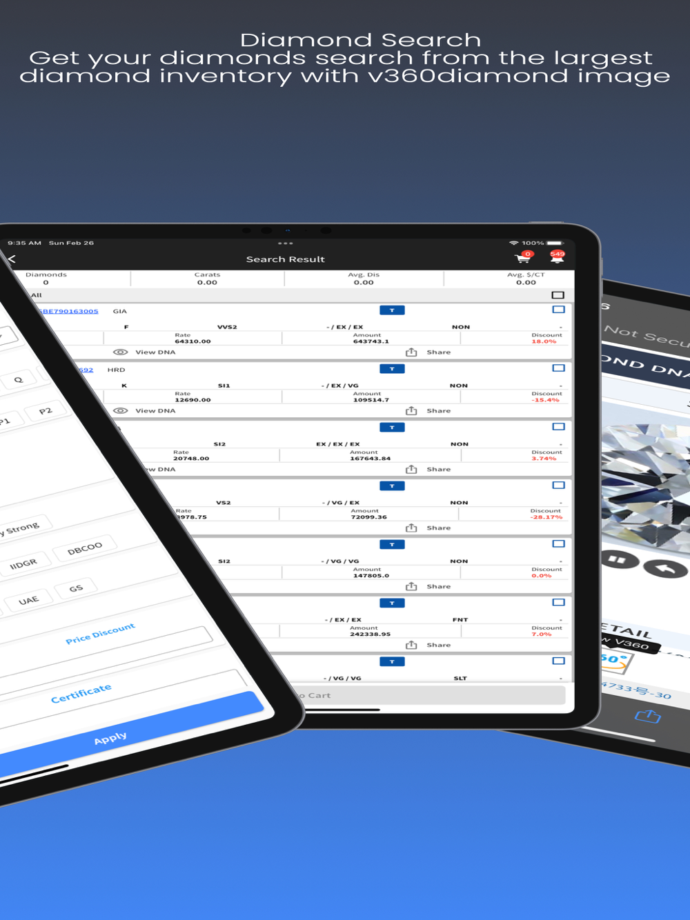 The app features a user-friendly interface that makes it easy for customers to search for and select diamonds based on their preferences, including cut, clarity, color, and carat weight. Users can also access detailed information about each diamond, including 360-degree videos and high-resolution images, allowing them to make informed purchasing decisions.