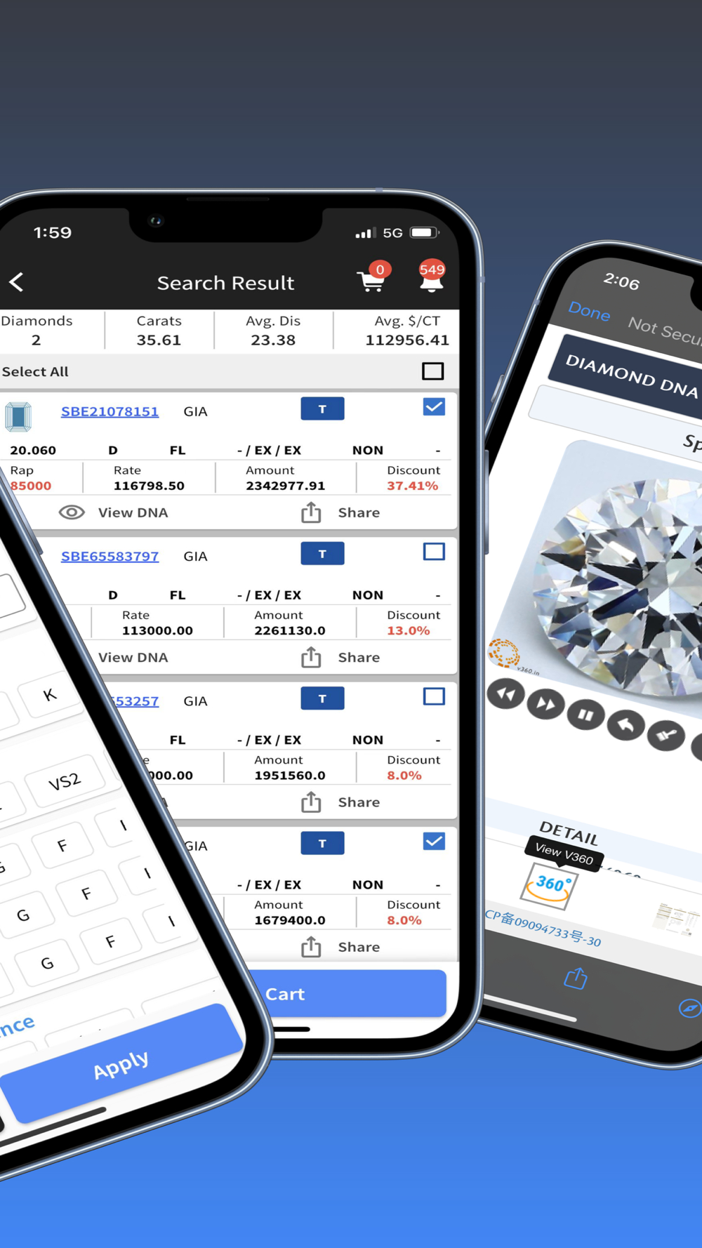 该应用程序具有简洁的界面,使客户可根据自己的喜好搜索和选择钻石变得简单,包括切割,清晰度,颜色和克拉重量。用户还可以查询到每颗钻石的详细信息,包括360度视频和高分辨率图像,使他们能够做出明智的购买决策。
