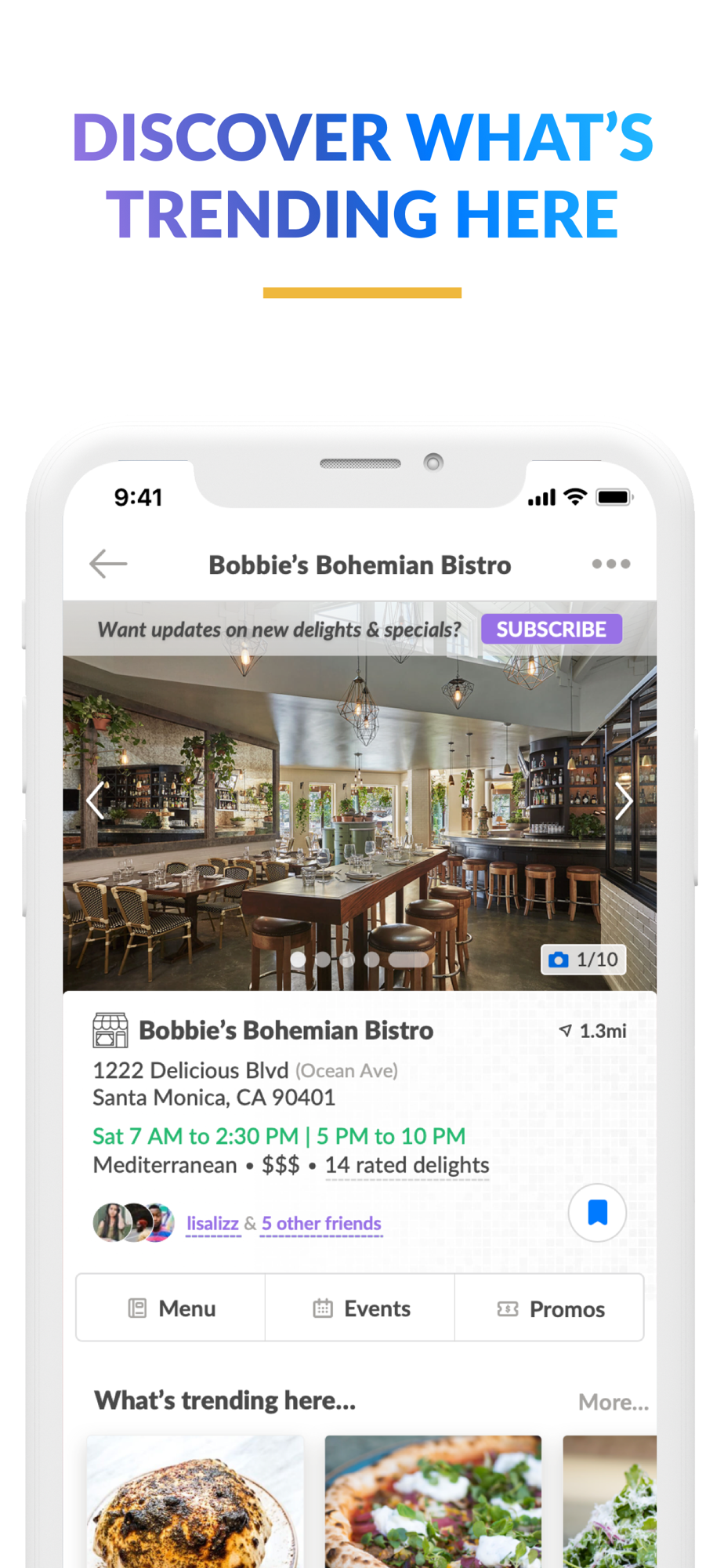 - Connect with friends and like-minded individuals to see where and what they are eating.