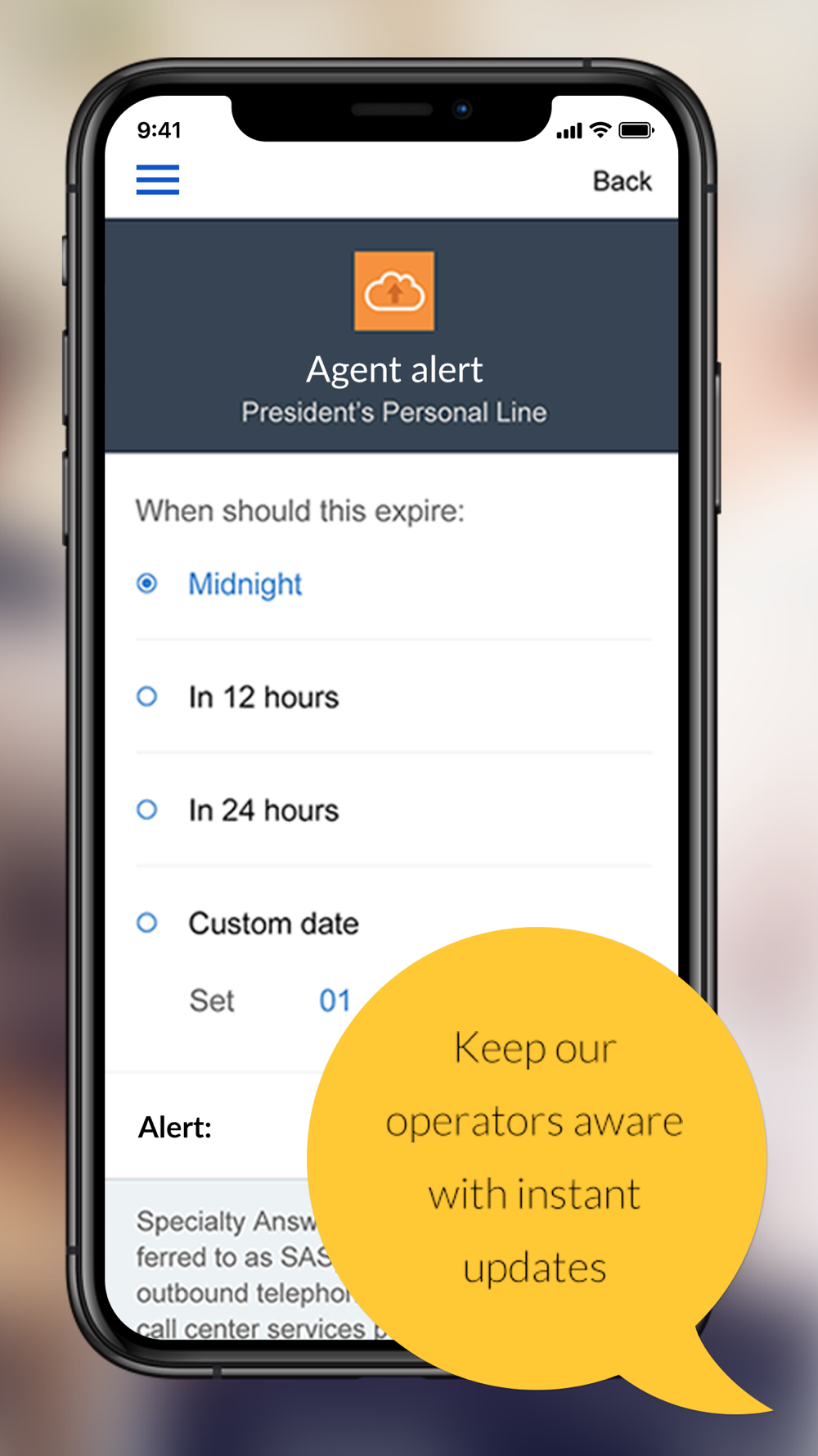 Whether you're out of the office or just too busy to handle calls, the Specialty Answering Service 1 Mobile App will help you stay on top of your business’ inbound communication, collaborate with your team, and keep your SAS receptionist in the know about anything important happening in your world. The App is easy, secure, and free for all Specialty Answering Service customers.