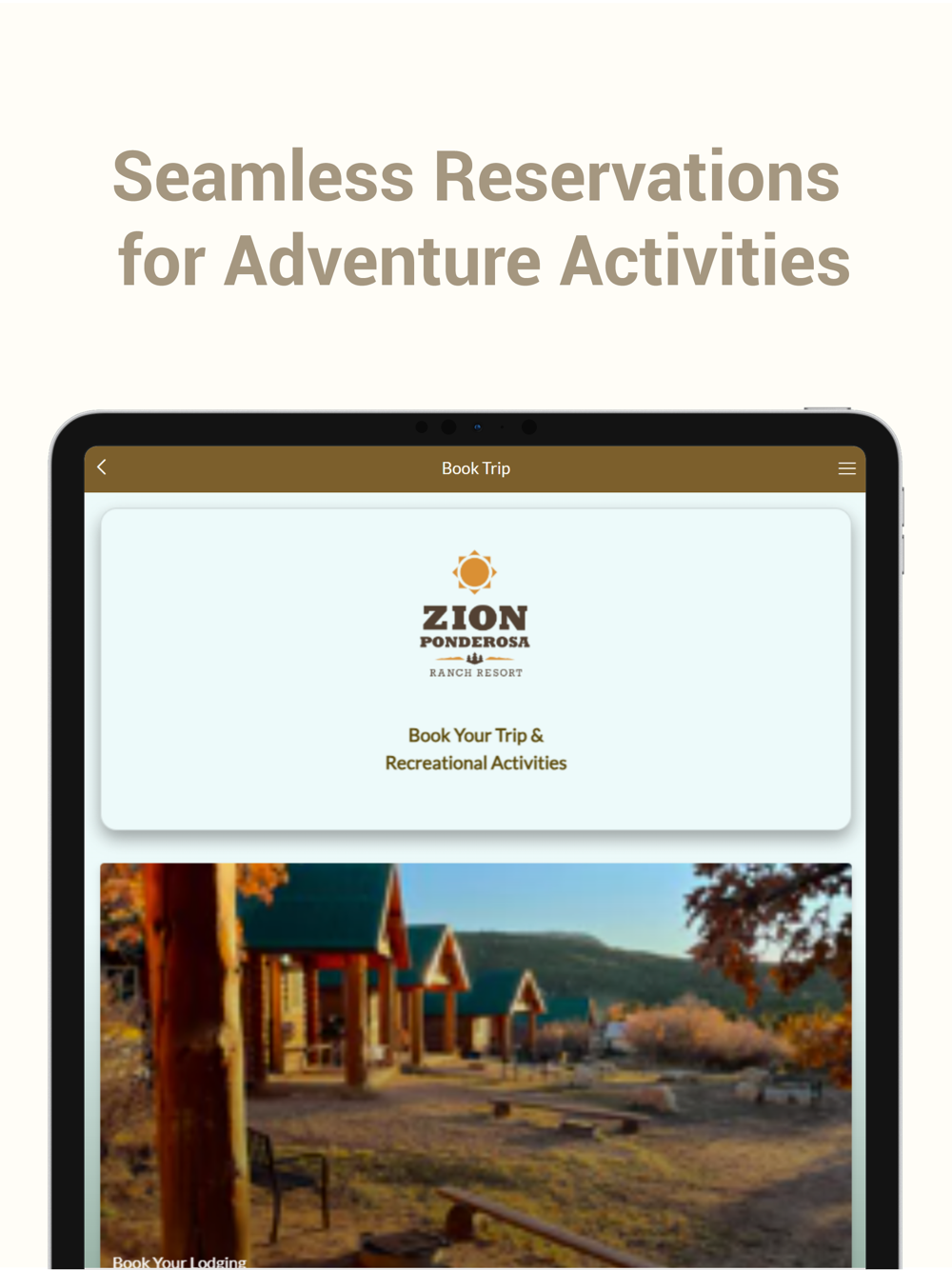 Zion Ponderosa Ranch Resort is an ideal place to stay when visiting Utah's #1 scenic attraction - Zion National Park. We are also a great destination for a multi-day vacation getaway with six lodging types, dining, and a great list of on-property activities including; ATV, horseback, jeep, climbing wall, zip line, guided hiking, canyoneering adventures, and more. This application provides information on Zion National Park and many of the attractions and visitor services you may need. With this app you'll have access to maps, trail information, an insider's guide to Zion National Park, and we'll send you notifications on special deals that we offer.