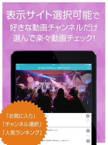 ・チャンネルリスト機能が搭載されており、好きなYOUTUBEのチャンネルだけをチェックできます。