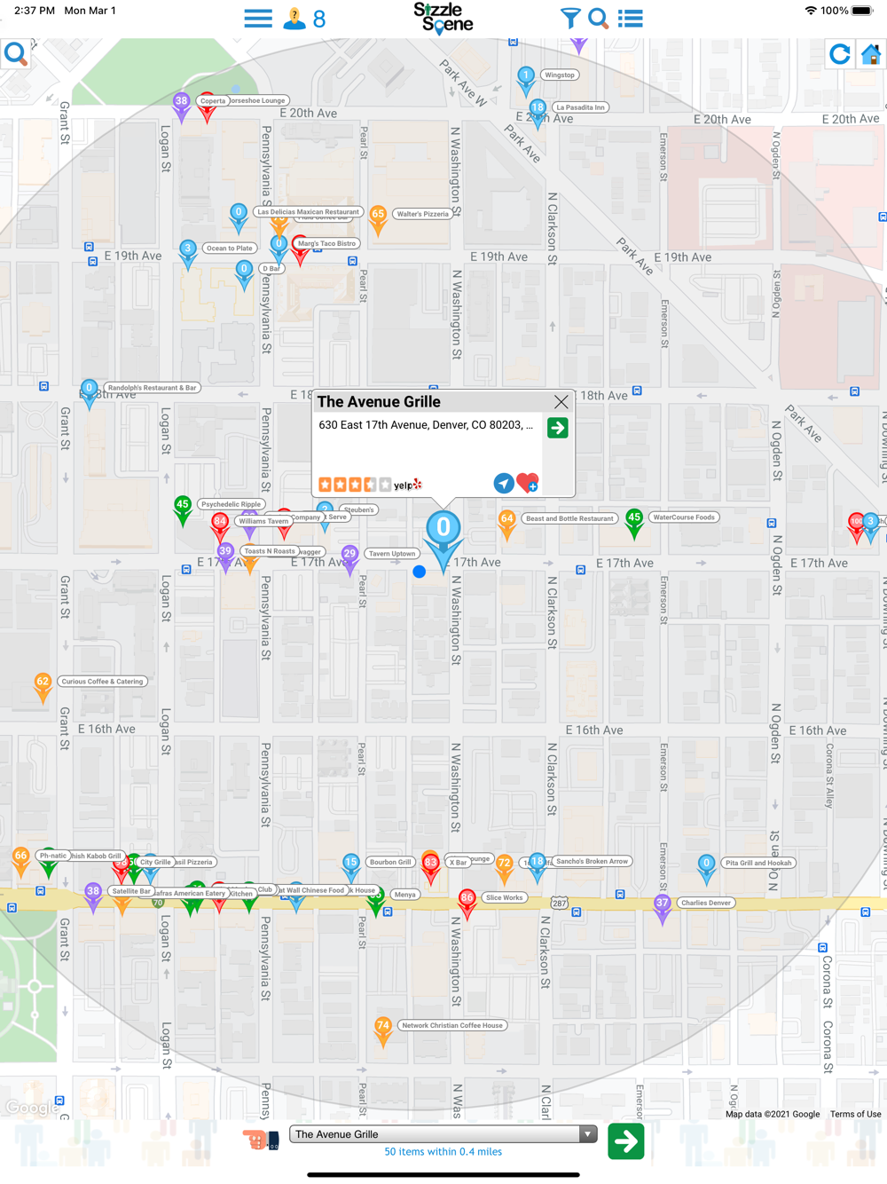 - Get more details on places, such as phone, web, pictures, Yelp! score
