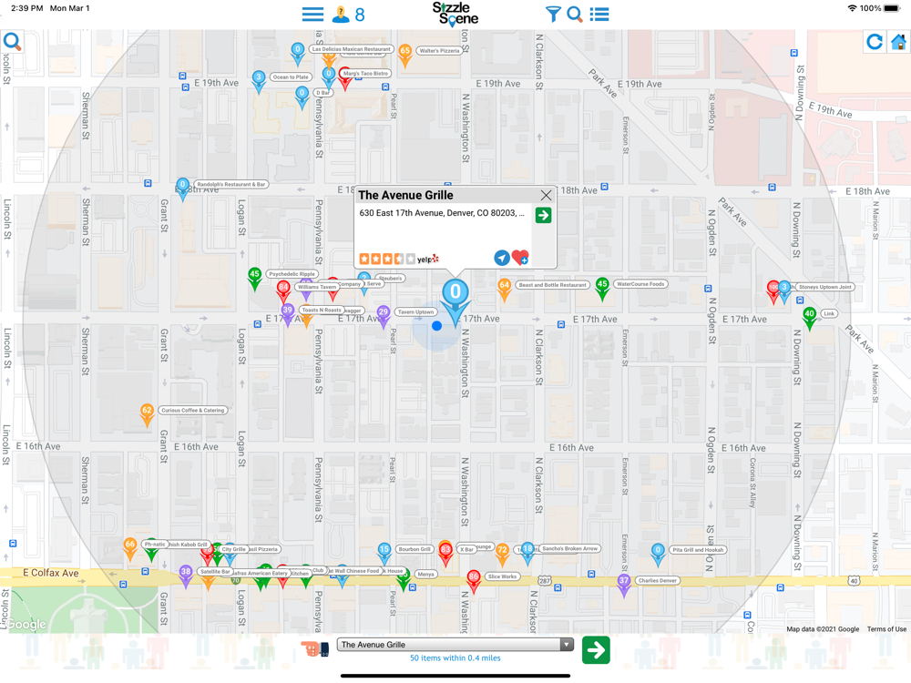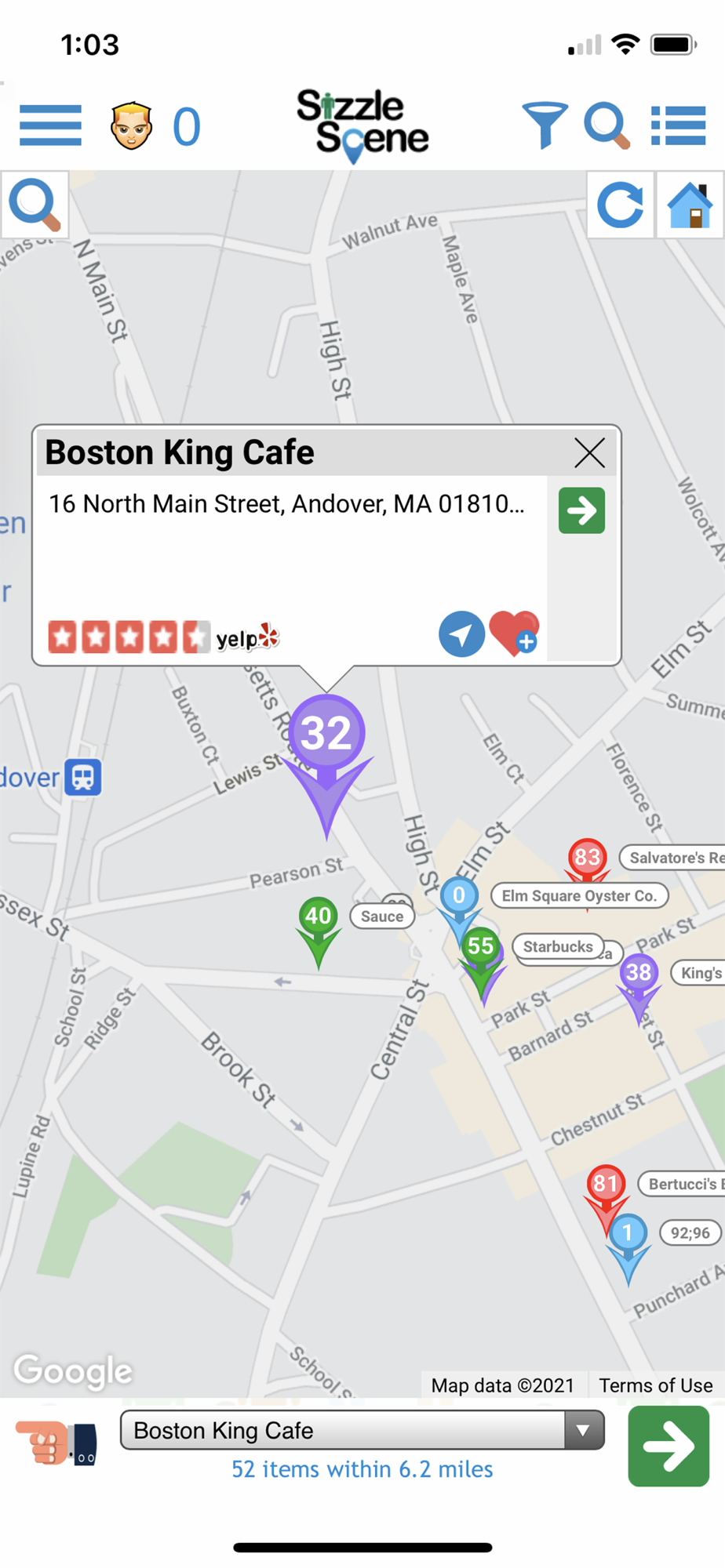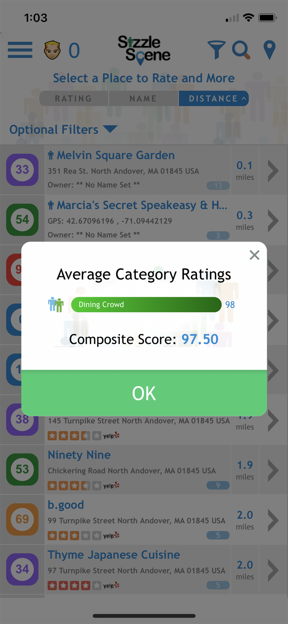 - Sort places by Name, Score, or Distance to quickly see what you want