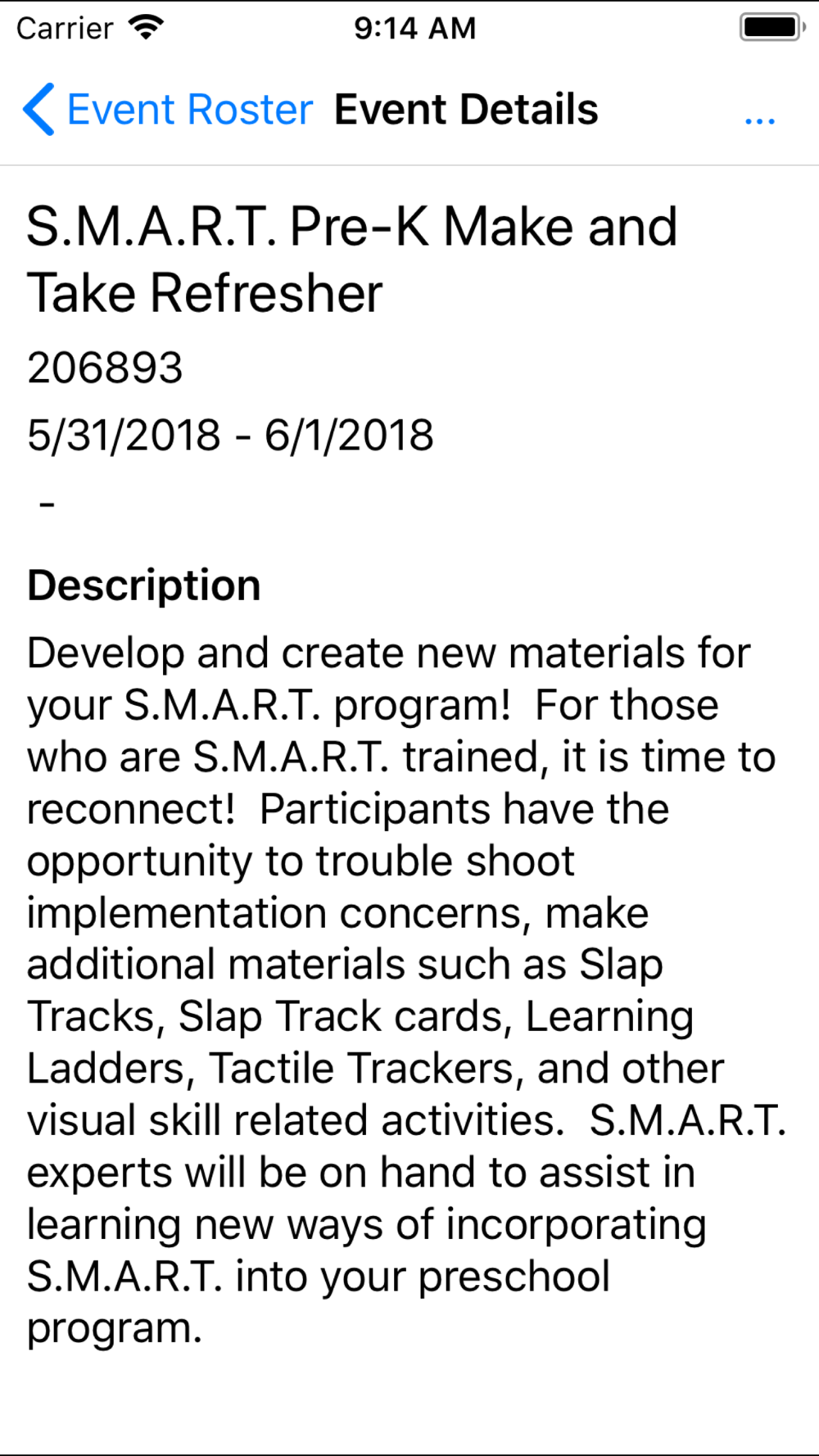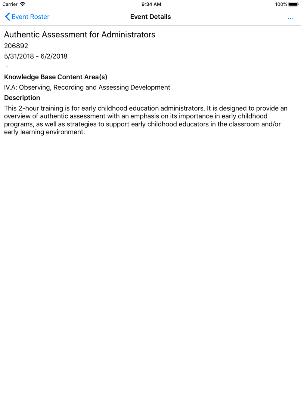 Log in as a verified Develop early child care trainer to view and manage all your events. See events in the near future along with being able to view and edit your event roster. Attendees with ID badges can be scanned right into the event, no need for any paper work!