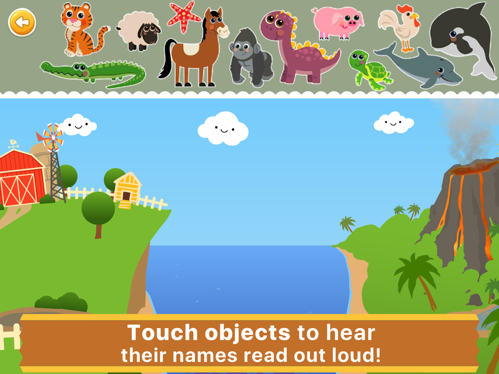 ▶ LEARN NEW WORDS and PRONUNCIATIONS by Tapping objects to HEAR their names read out-loud. This helps your child to listen and learn new vocabulary words by professionally recorded native speakers