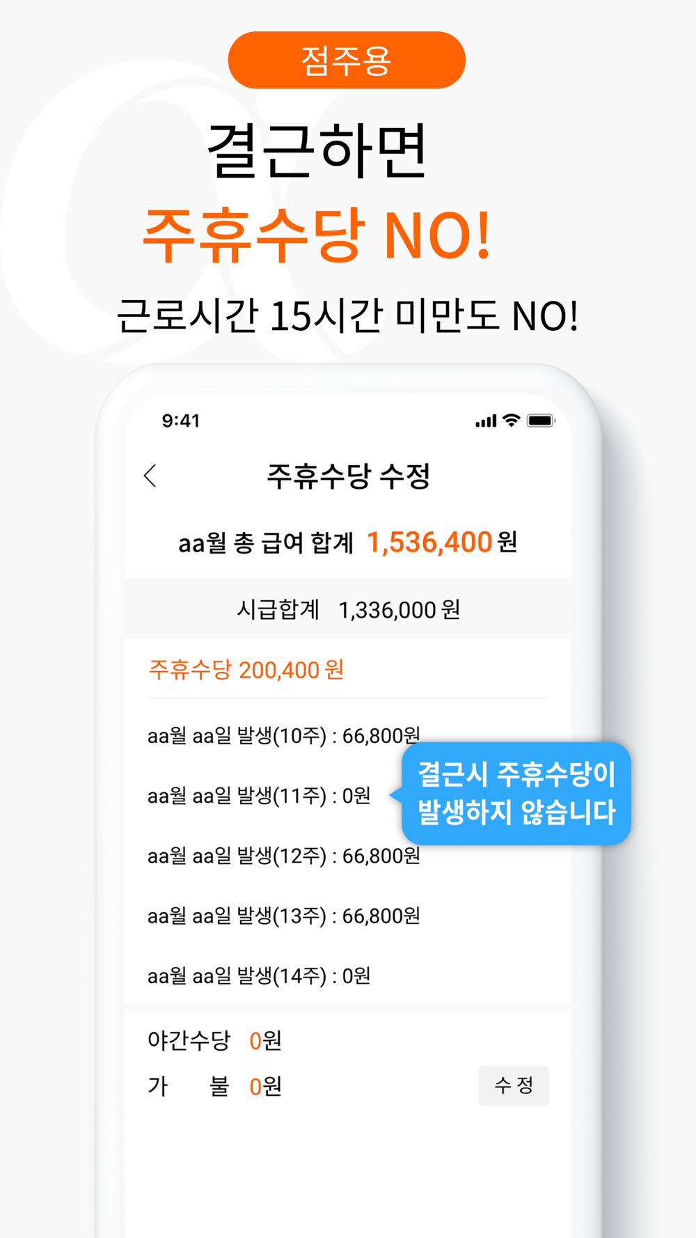 (타사 앱은 40시간 초과 시간도 주휴수당 계산이 되면서 인건비 과다지출이 발생합니다.)