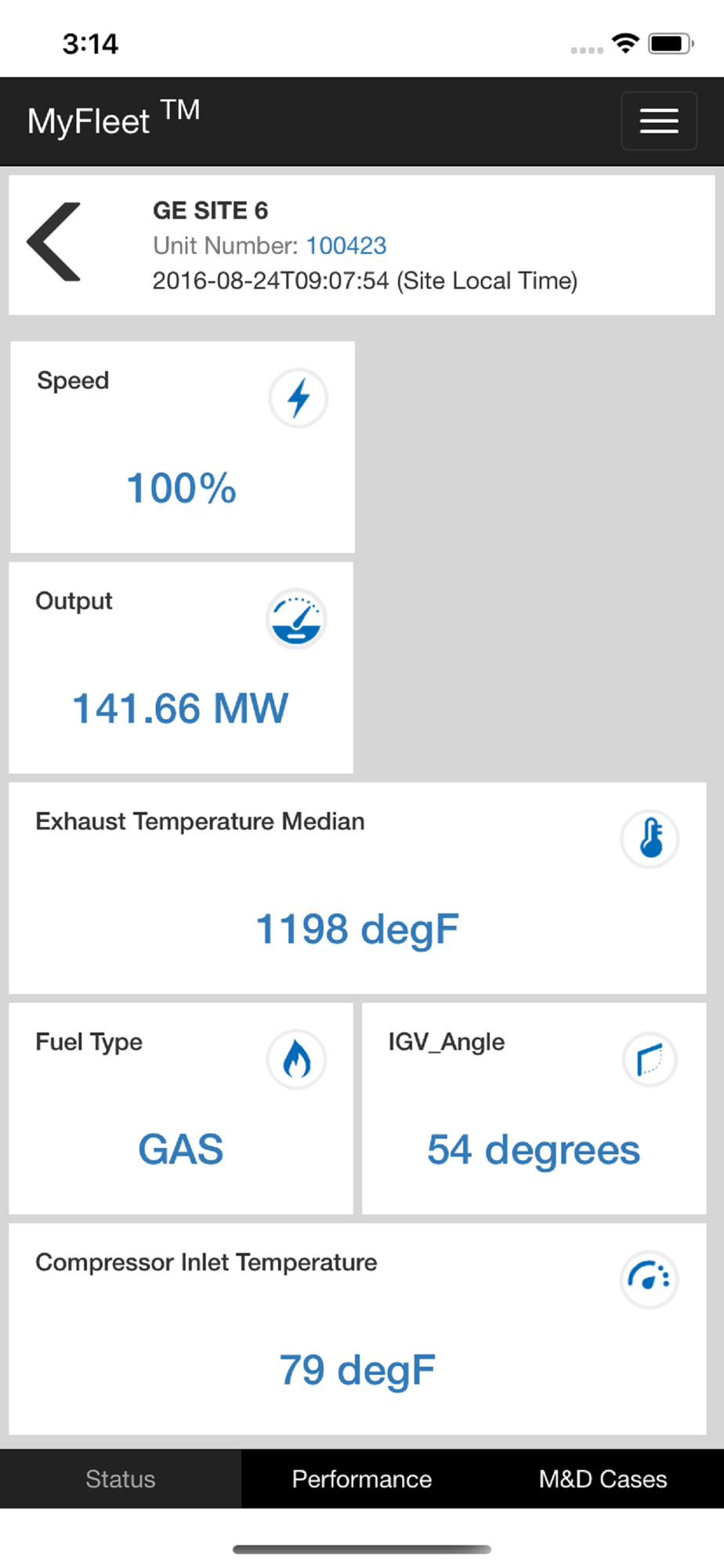 MyFleet in My Pocket! This Industrial Internet app enables GE Power Services customers to view health and performance data real-time for their monitored equipment. Power Plant managers and owners can stay connected, be in control, and have 24/7 access to their Gas Turbine fleet.