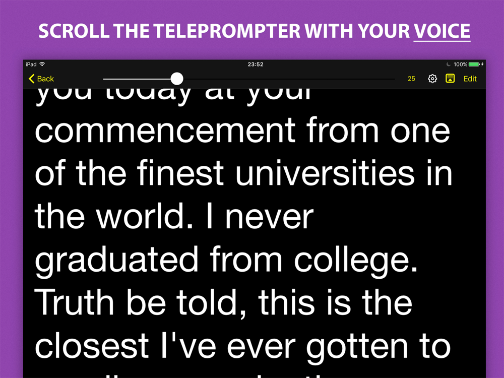 A truly professional prompter app. If you need to take a break, you don't need to worry about losing your place.