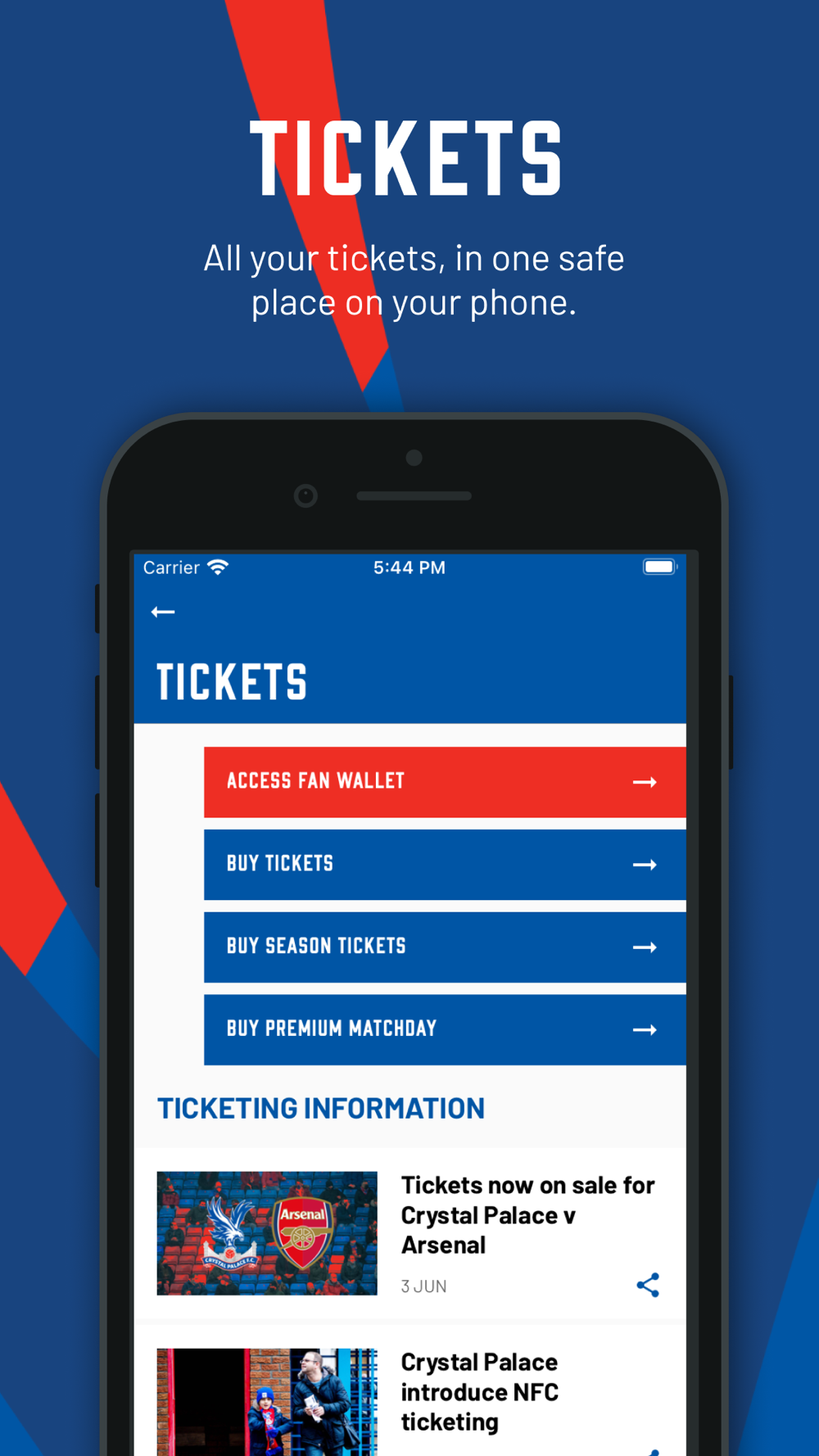 You can now also manage your Palace account within the app, and soon you will be able to add your Season Ticket or match tickets to your Ticket Wallet, to gain entry to Selhurst Park using near-field-communication technology.