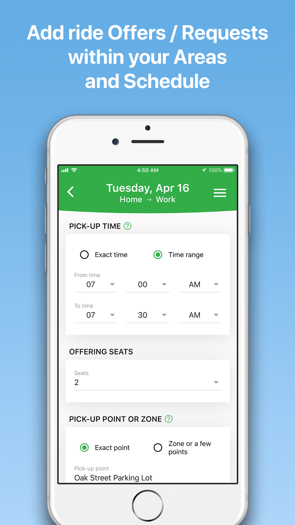 - Use once or daily, drive or ride, set your locations and pick-up time
