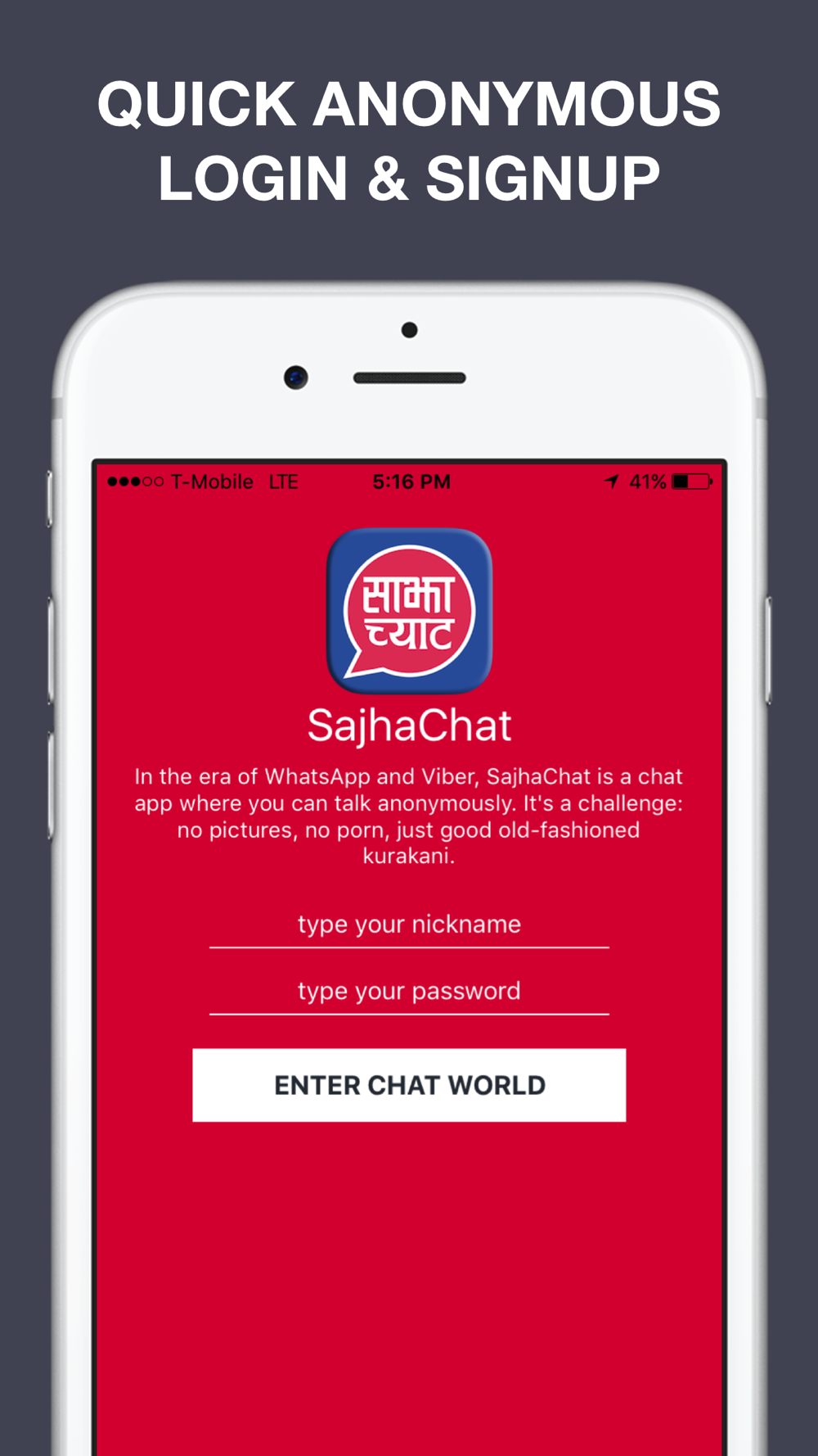 Why calling it Sajha Chat? Because we’ve got inspired by an old anonymous chat app called "KTM Chat" which I have used back in 2005.