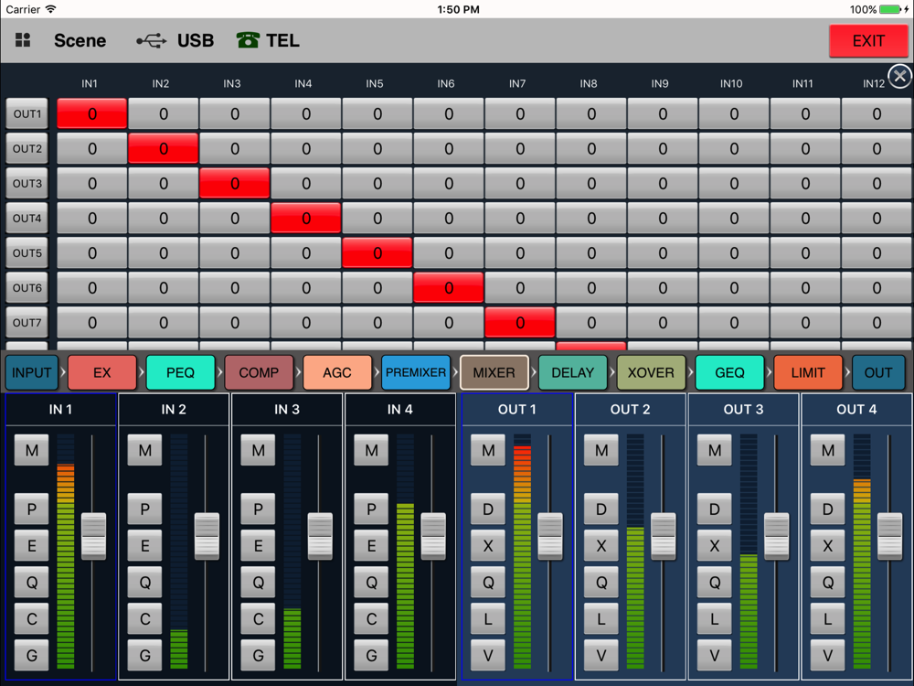 TIGER PLUS(数字音频处理器控制软件)是安装在iPad平板上的APP客户端。可以实现对全系列音频处理器设备的可视化调节,包括输入输出增益、幻象供电、各种自带处理模块、矩阵混音等等,同时具备快速静音、各模块开关,快速切换设置场景等方便的操作界面。稳重简约的设计风格,全景式功能菜单,配合快速操作栏,可以非常方便的对处理器进行各项操作。一切只为给您更好的用户体验。