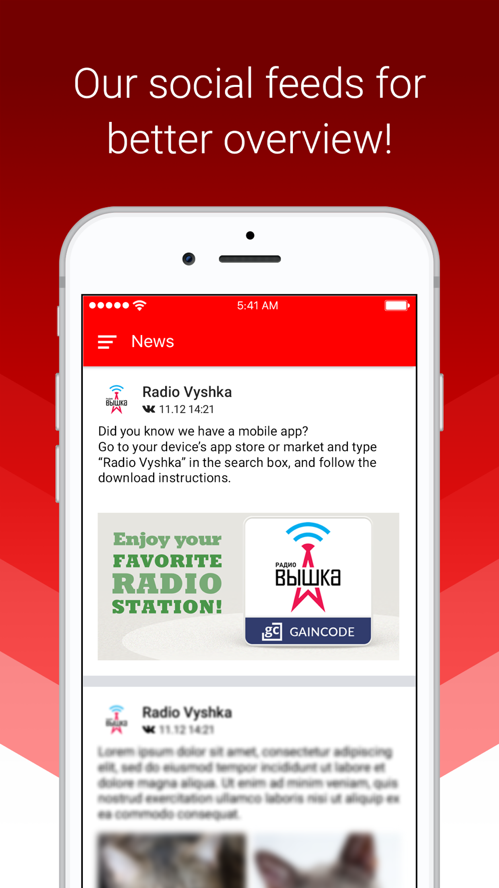 • Get all latest news from social networks.