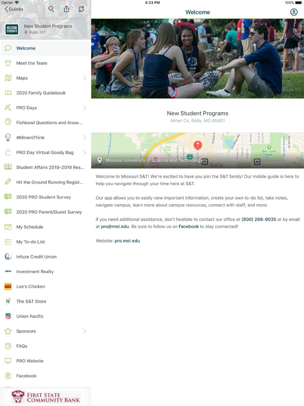 Missouri S&T Guides is the official app for Student Success Programs at Missouri University of Science and Technology. S&T Guides will allow for you to download guides to some of S&T’s most important events including: Preview, Registration, Orientation (PRO), Opening Week, Transfer Transitions and Reconnection.