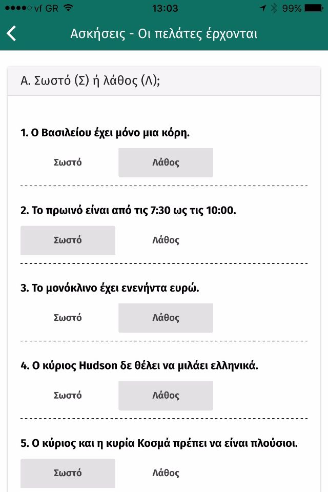 Τhe Greek Easy Reader Apps are language learning apps based on short stories accompanied by related exercises, which aim at improving the learner’s reading comprehension skills and building up their vocabulary. All stories are authored by experienced Greek language teachers. The narratives are original detective stories or adventure tales, which may be read and further exploited by the learner with or without the help of a teacher or dictionary. The series consists of 10 titles in 5 learning stages.