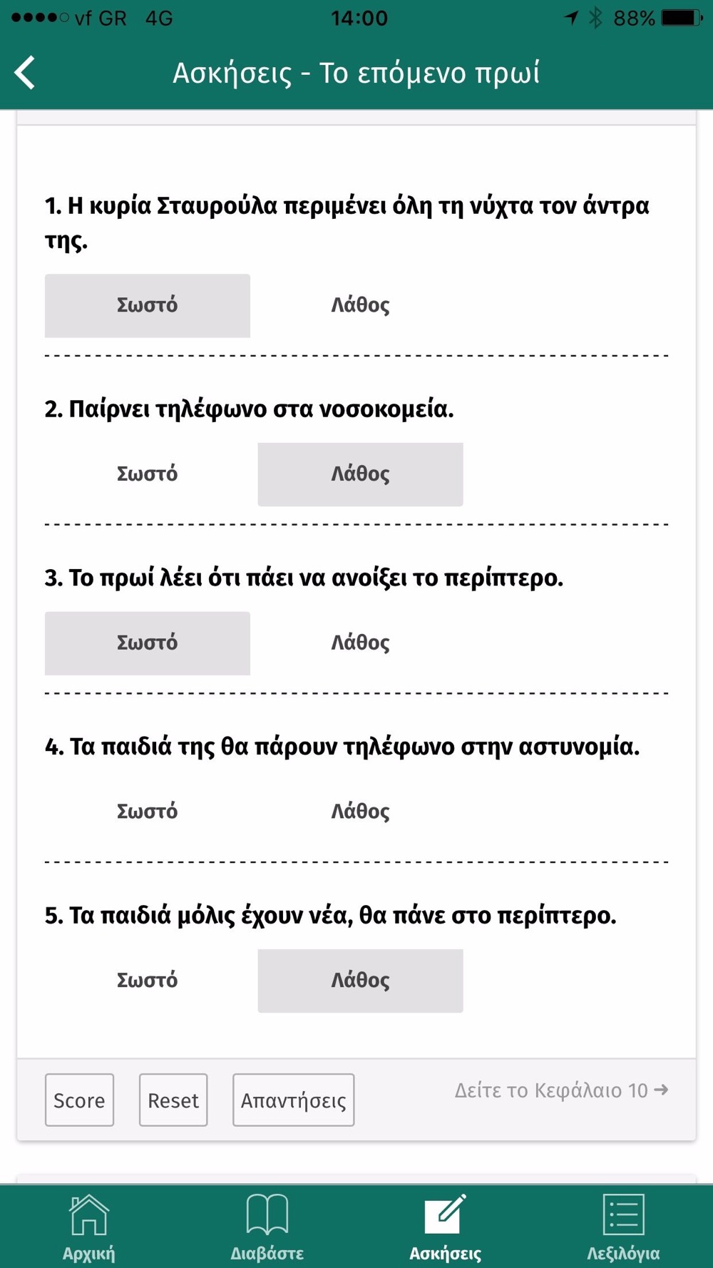 Τhe Greek Easy Reader Apps are language learning apps based on short stories accompanied by related exercises, which aim at improving the learner’s reading comprehension skills and building up their vocabulary. All stories are authored by experienced Greek language teachers. The narratives are original detective stories or adventure tales, which may be read and further exploited by the learner with or without the help of a teacher or dictionary. The series consists of 10 titles in 5 learning stages.