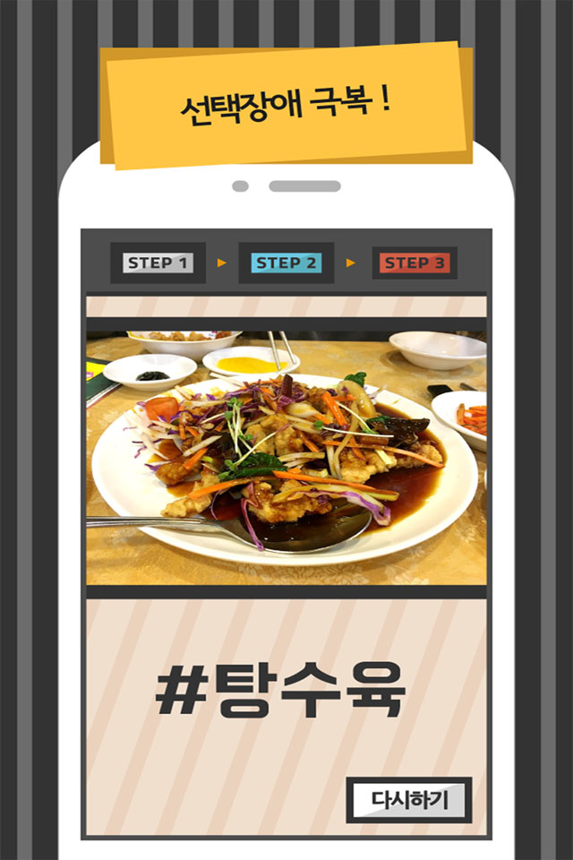 단 세번의 클릭으로 오늘의 메뉴를 골라주는 '선택장애 - 식사편'으로 메뉴 선택에 대한 스트레스를 날려버리세요.