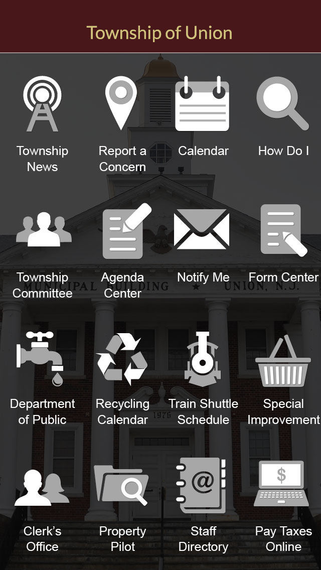 Welcome to the Township of Union's new Mobile App! Your one stop shop for vital information and connecting with the Township of Union. A diverse and populous area with a small town feel, we are located in north-central Union County and traversed by a network of local and regional roadways including the Garden State Parkway, Interstate 78, US Route 22, and State Route 82 commonly known as Morris Avenue. Union the host for the Annual Union County St. Patrick's Day Parade, and is located near the Newark Liberty International Airport. Featuring a direct link to the Township Calendar, a Form Center for access to DPW and TV34 submissions, and a connection to the Staff Directory and Township Facilities, this app is a must have for residents and visitors alike. The app also features an Agenda Center where you can find agendas from past and present committee meetings; an Archive Center, as well as access to the Citizen Request Tracker, Township News Flashes and the ability to sign up for updates. Need further info? The app also links back to the Twp of Union's mobile-friendly website. Download now!