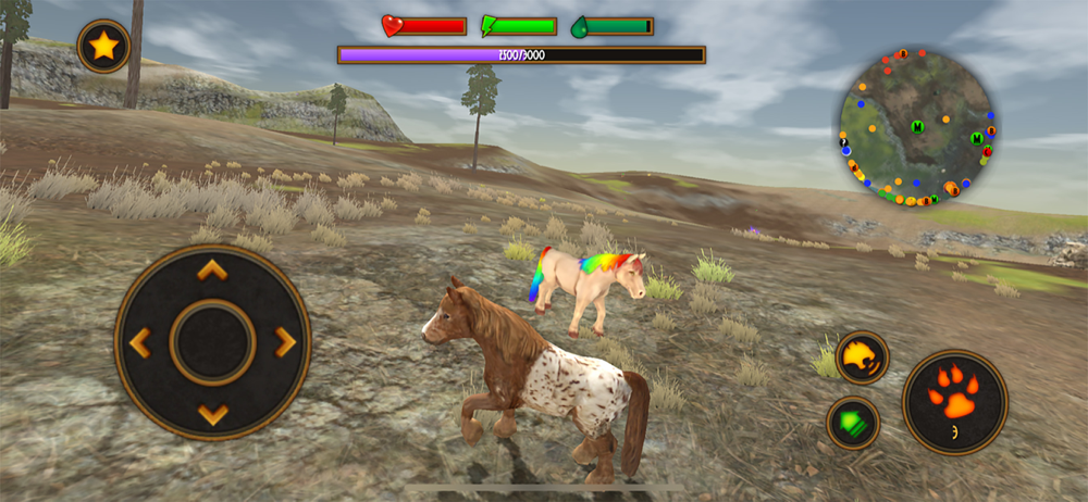 The most action packed pony simulator game on the app store. Loaded with all your favorite forest animals including: Fox, Deer, Wolf, Horse, Bear, and Giant Eagle. Enter this forest world as a young miniature horse, help her find her family, grow into a giant, and dominate the territory.