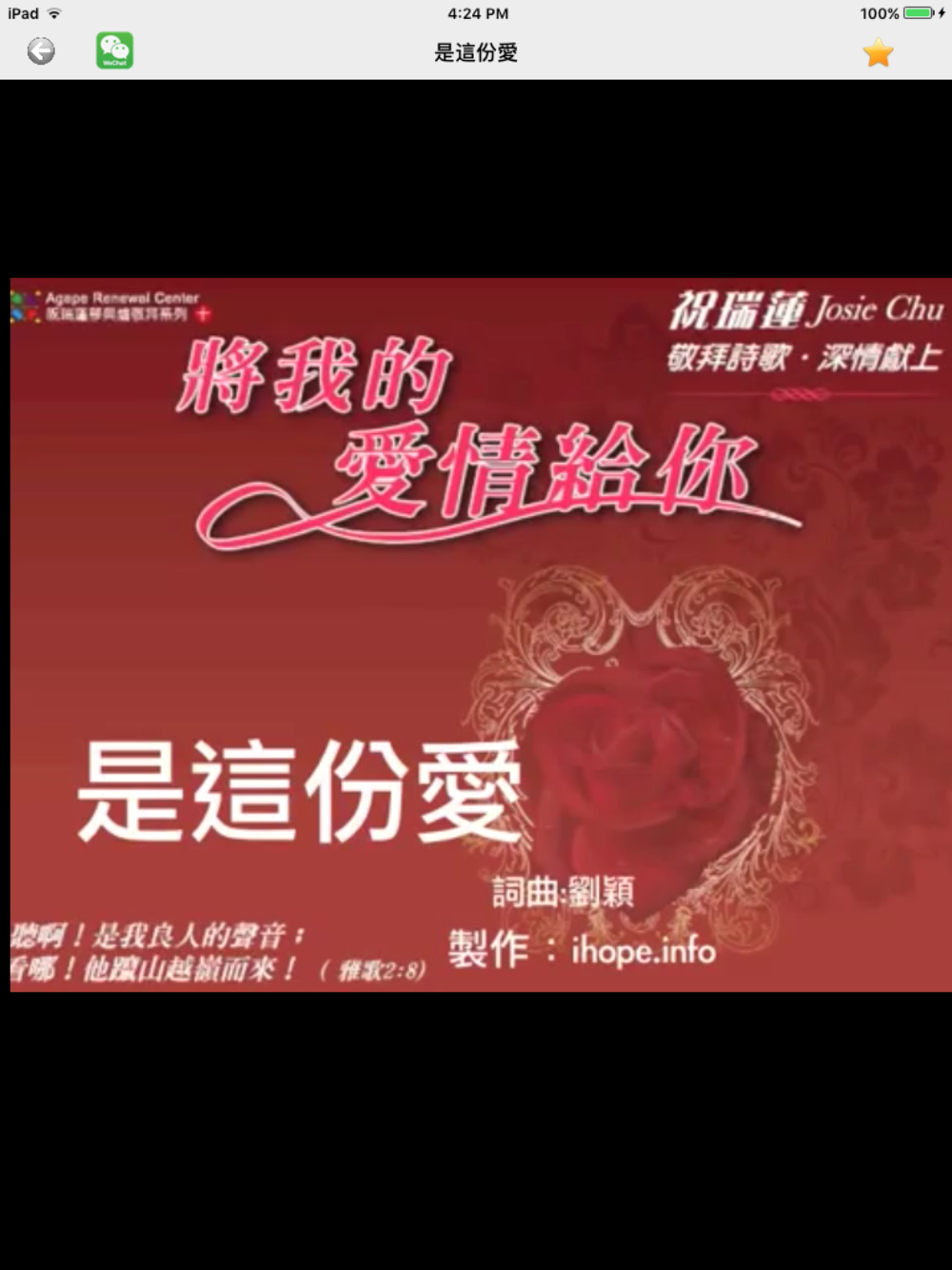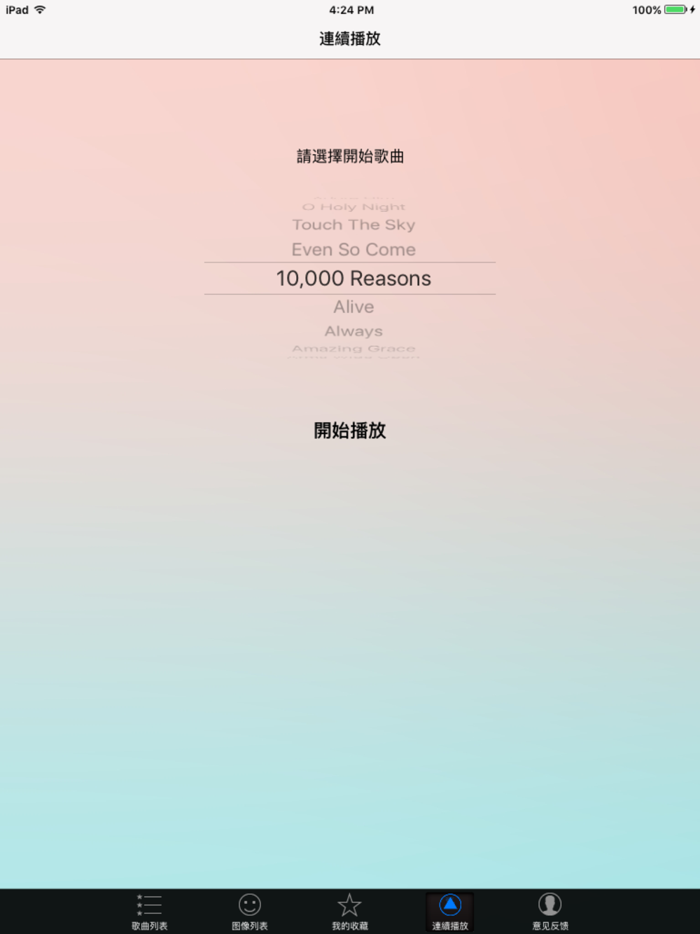 本app精選了兩百首膾炙人口的中英基督徒歌曲, 并提供連續播放功能。 無論是在中國,還是在世界上任何一個角落,你都可以隨時隨地收聽和觀看這些基督徒歌曲和視頻。連續播放功能既可以讓歌聲一直陪伴您進入夢鄉,也可以通過藍牙在汽車音響上連續收看,為您的旅途生活帶來樂趣和享受。